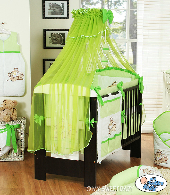 Bedding set 7-pcs with moskito net (L70)- Teddy Bear Barnaba green Baby bedding set 7pcs with long bumper and moskito net- Collection Teddy Bear Barnaba