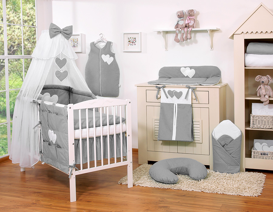 Bedding set 7-pcs with mosquito-net- Hanging Hearts anthracite In the lovingly designed bedding it wonderful to sleep. Skin-friendly quality invites you to dream.