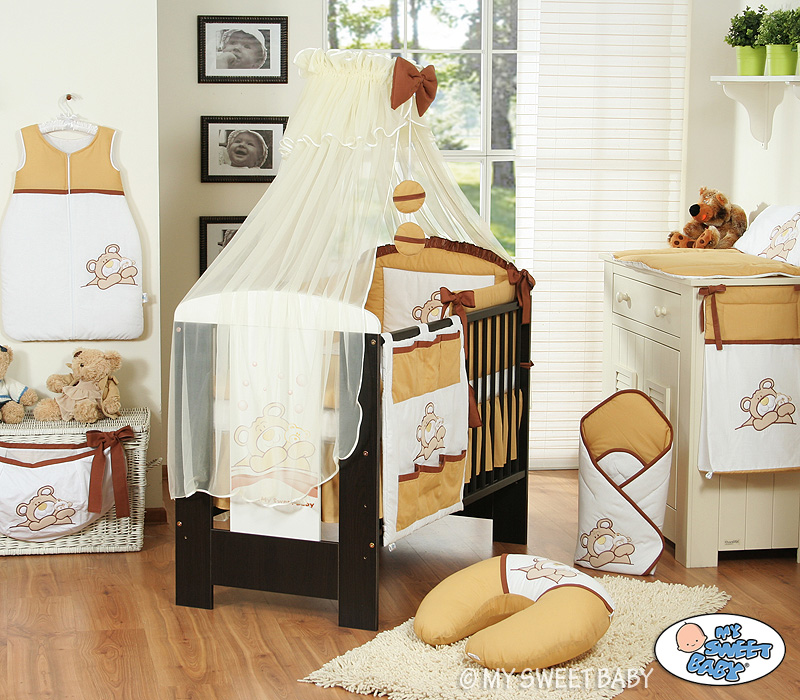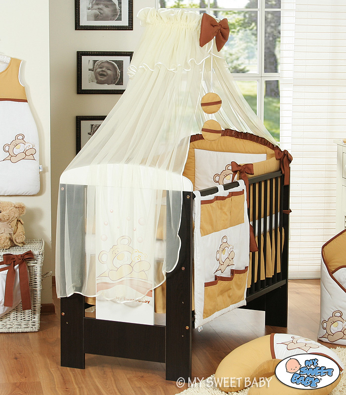 Bedding set 7-pcs with Mosquito-net (L60)- Teddy Bear Barnaba brown Baby bedding set 7pcs with Mosquito-net and long bumper- Collection Teddy Bear Barnaba