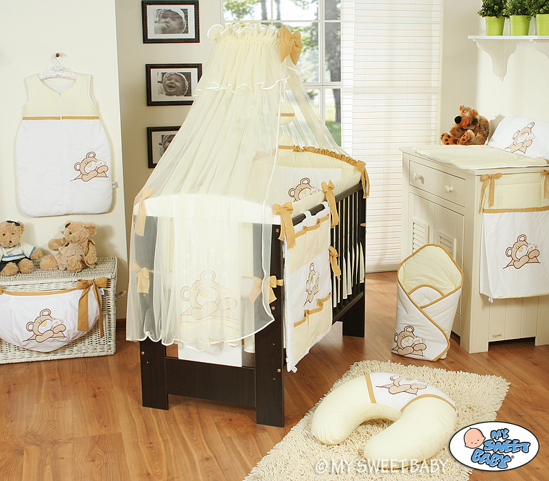 Bedding set 7-pcs with Mosquito-net (L60)- Teddy Bear Barnaba cream Baby bedding set 7pcs with Mosquito-net and long bumper- Collection Teddy Bear Barnaba