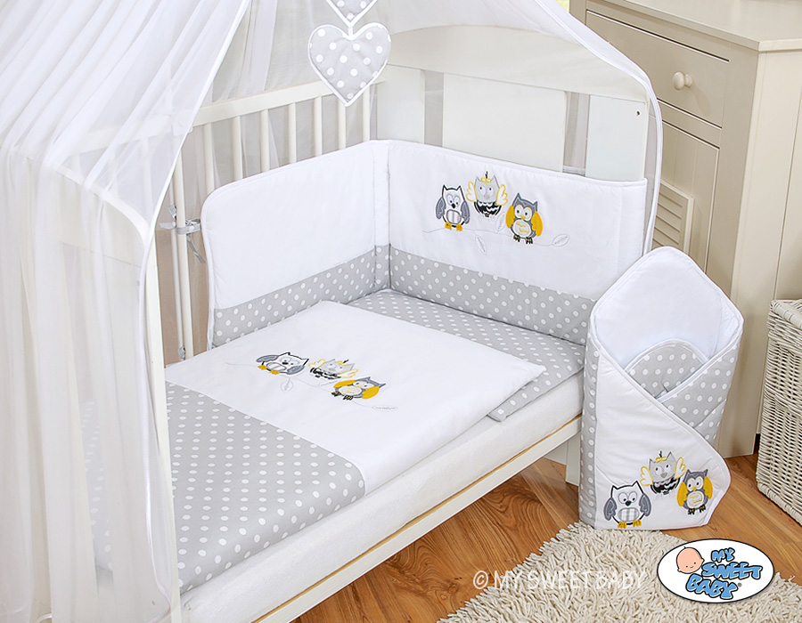 Bedding set 7-pcs with mosquito-net- Owls Gray-yellow Bedding set 7 pcs with filling- Collection Owls Bigi Zibi & Adele