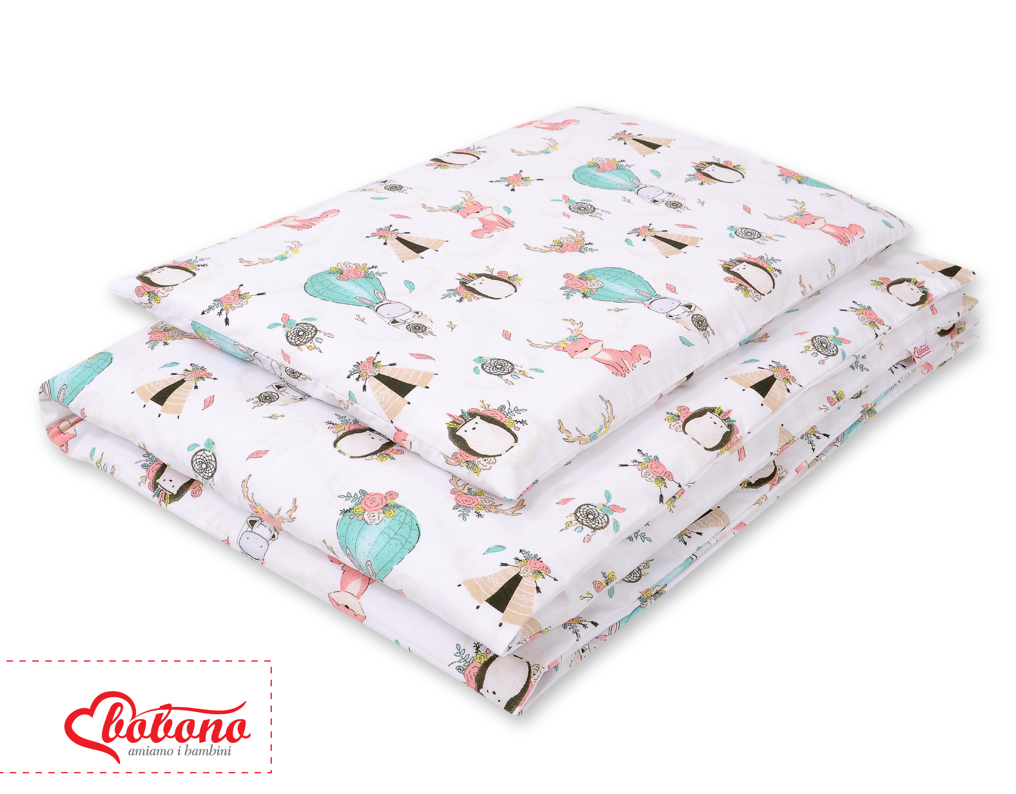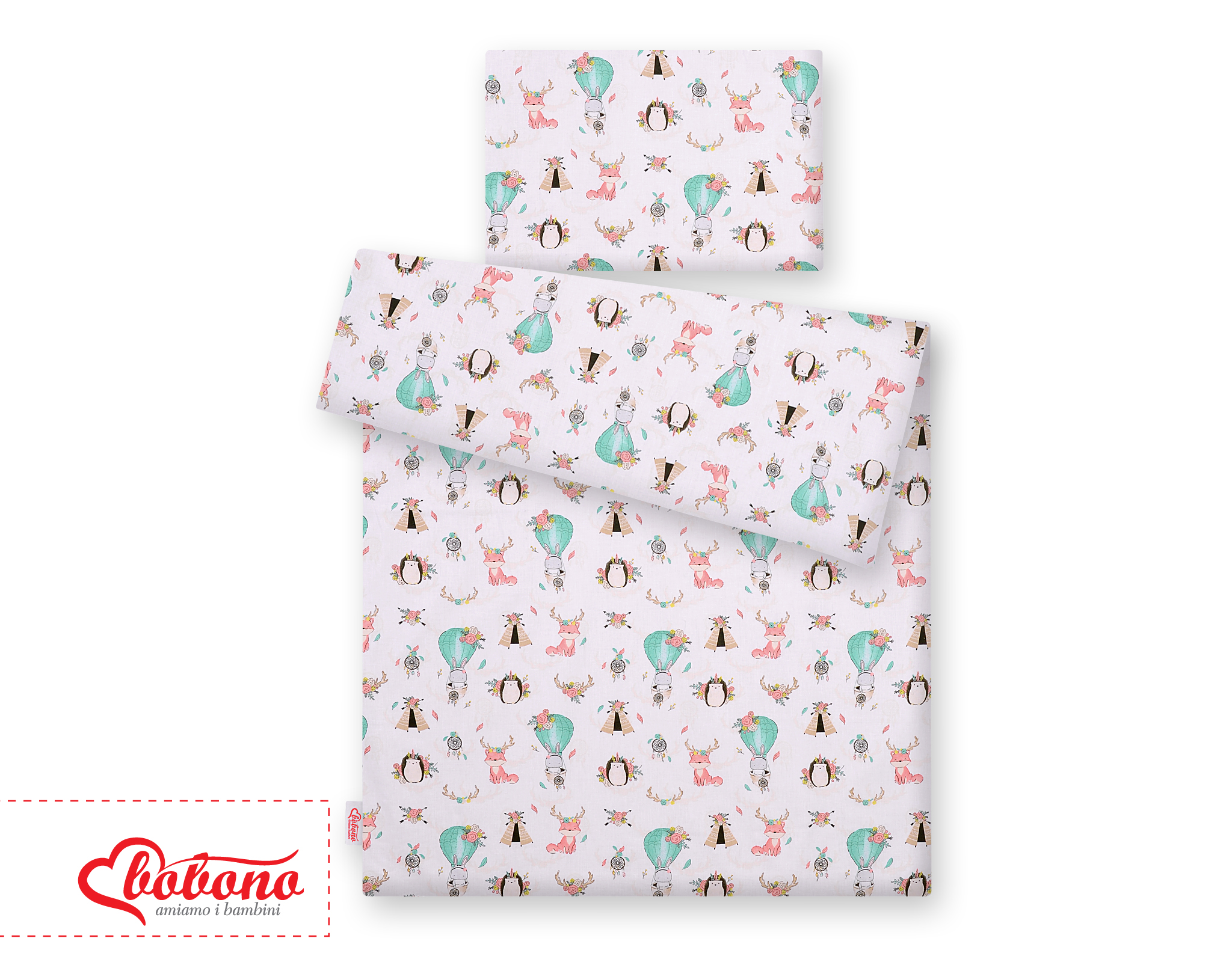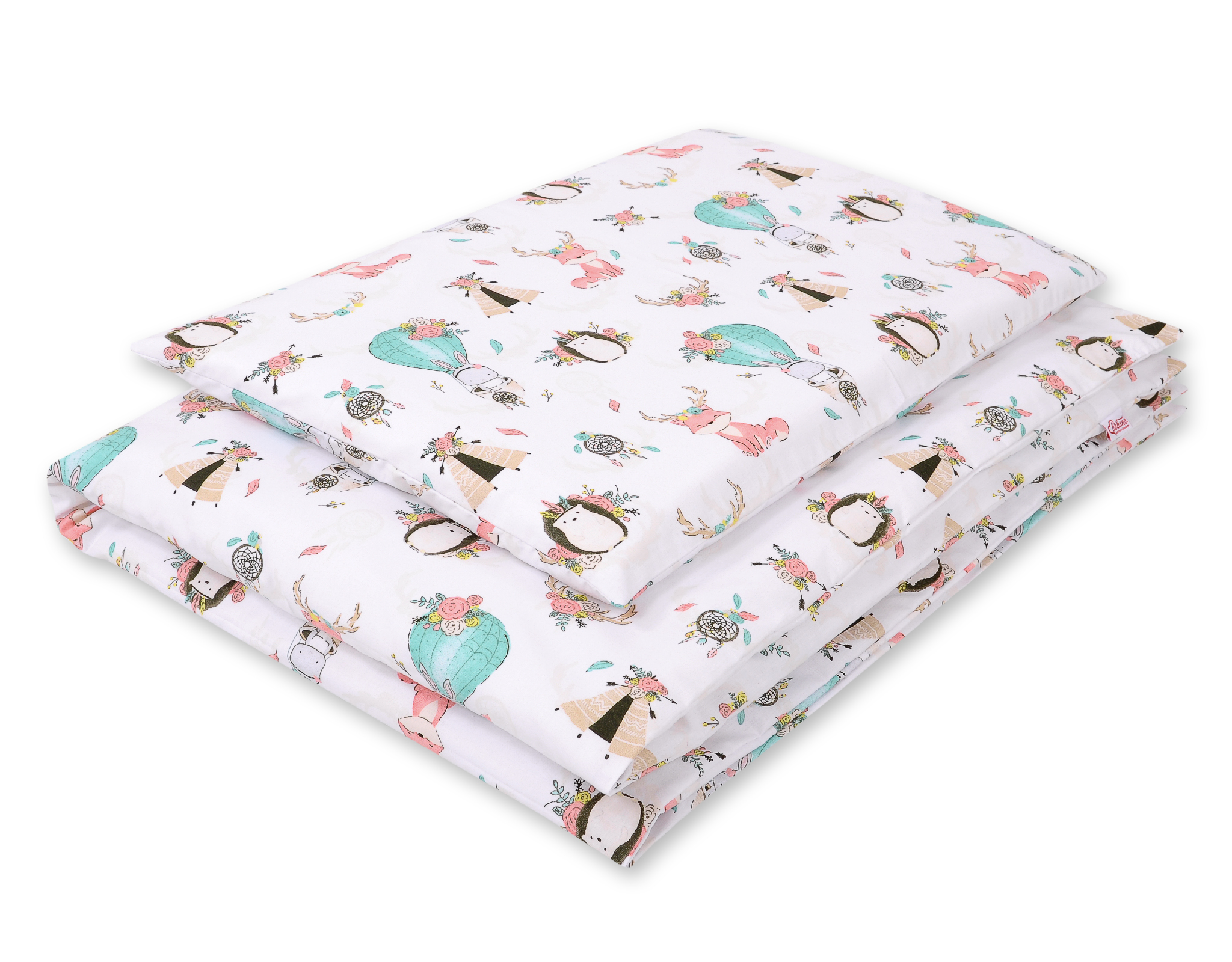 2. Quilt cover 120x90cm or 135x100cm. Made of 100% cotton fabric, certified Oeko-tex Standard 100. Pillow fastened with a indoor zip, which facilitates a quick change of bedding.