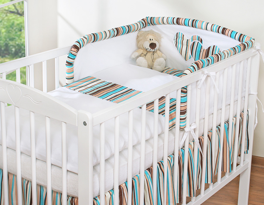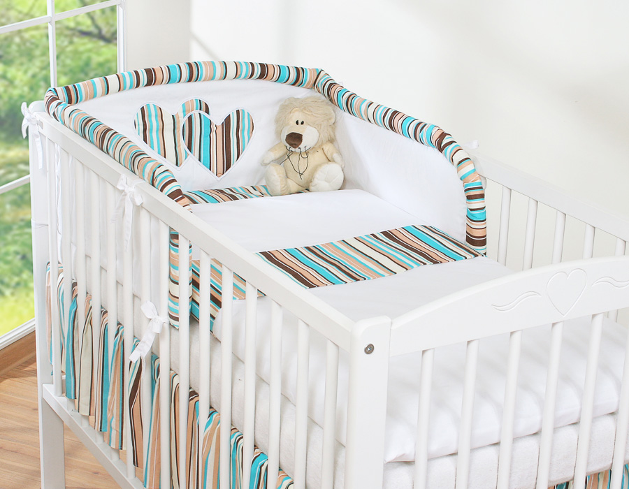 For cot 60x120cm and 70x140cm. Stripes Brown Hearts Hanging 2-pcs- Bed Baby For Bedding