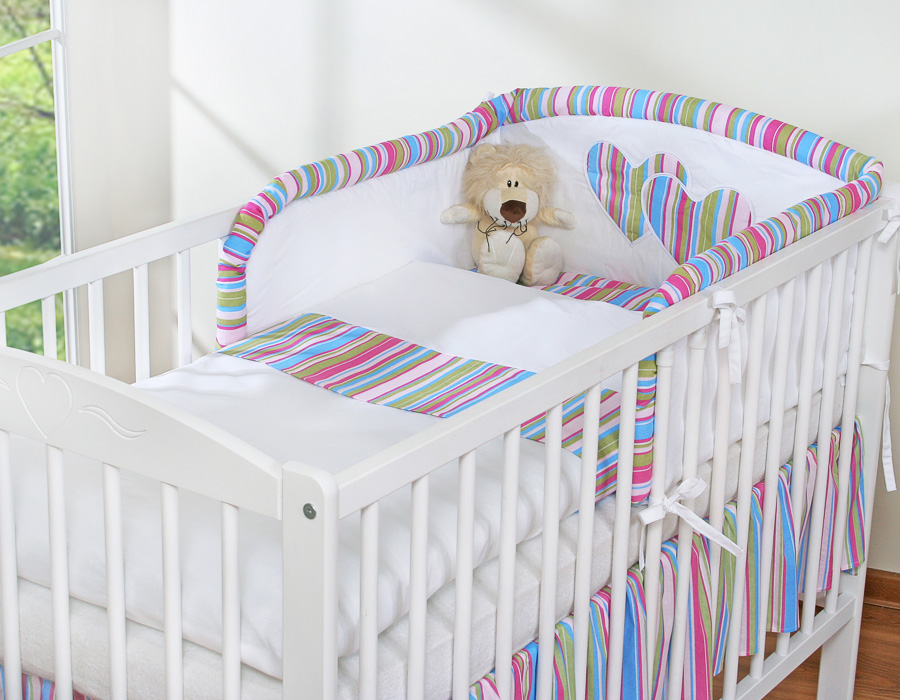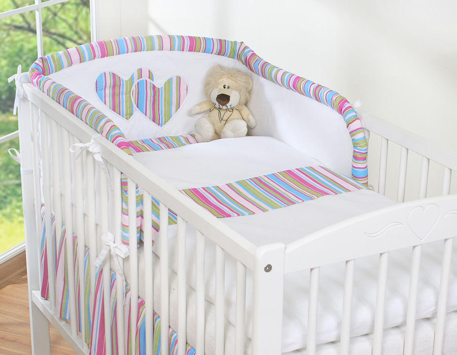 For cot 60x120cm and 70x140cm. Stripes Lilac Hearts Hanging 2-pcs- Bed Baby For Bedding