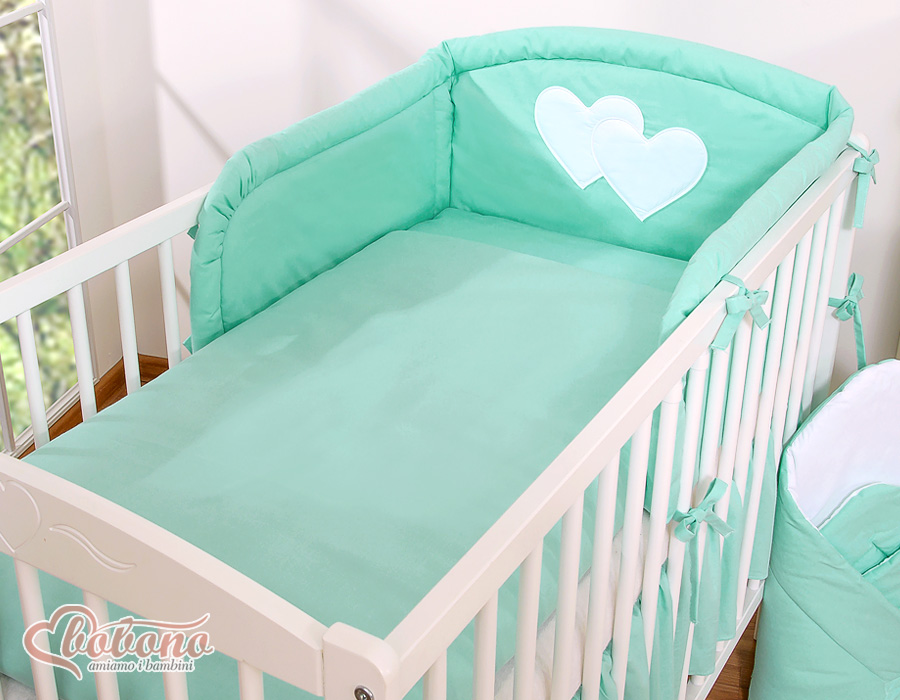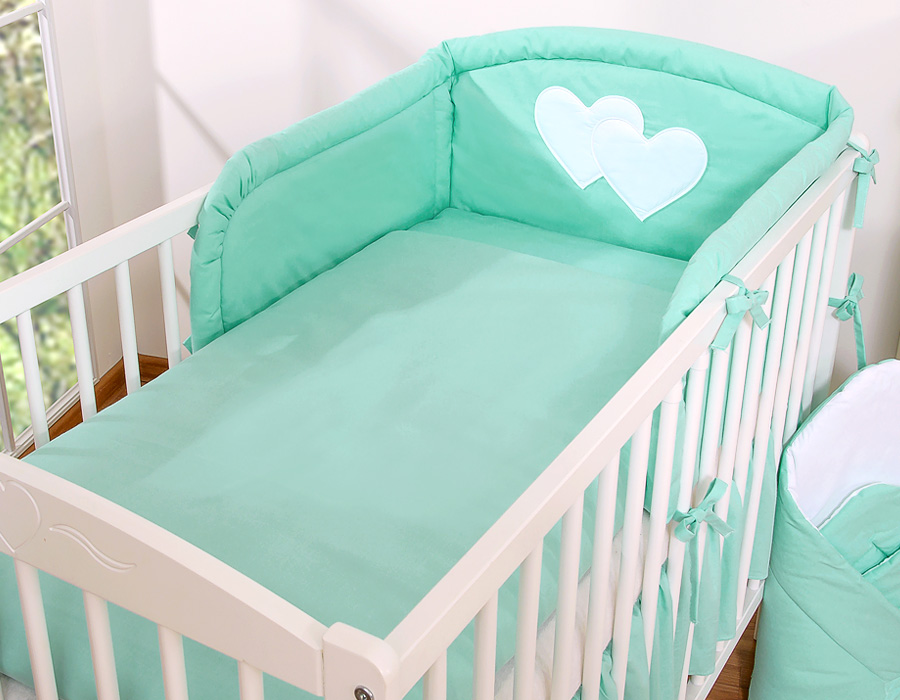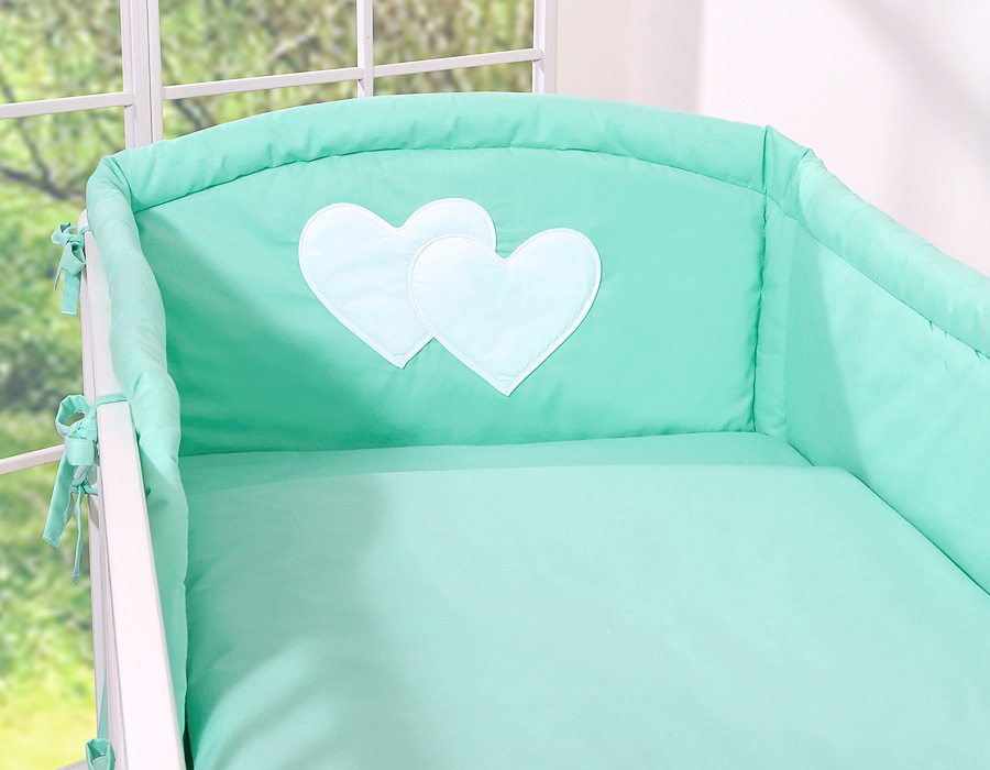 For cot 60x120cm and 70x140cm. Mint Hearts Hanging 2-pcs- Bed Baby For Bedding