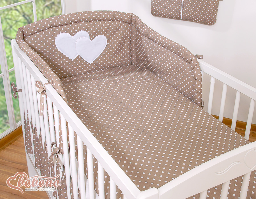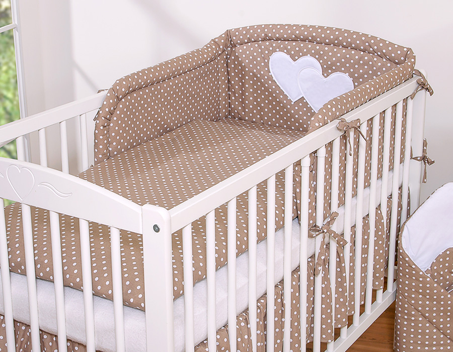 For cot 60x120cm and 70x140cm. Brown On Dots White Hearts Hanging 2-pcs Bed Baby For Bedding