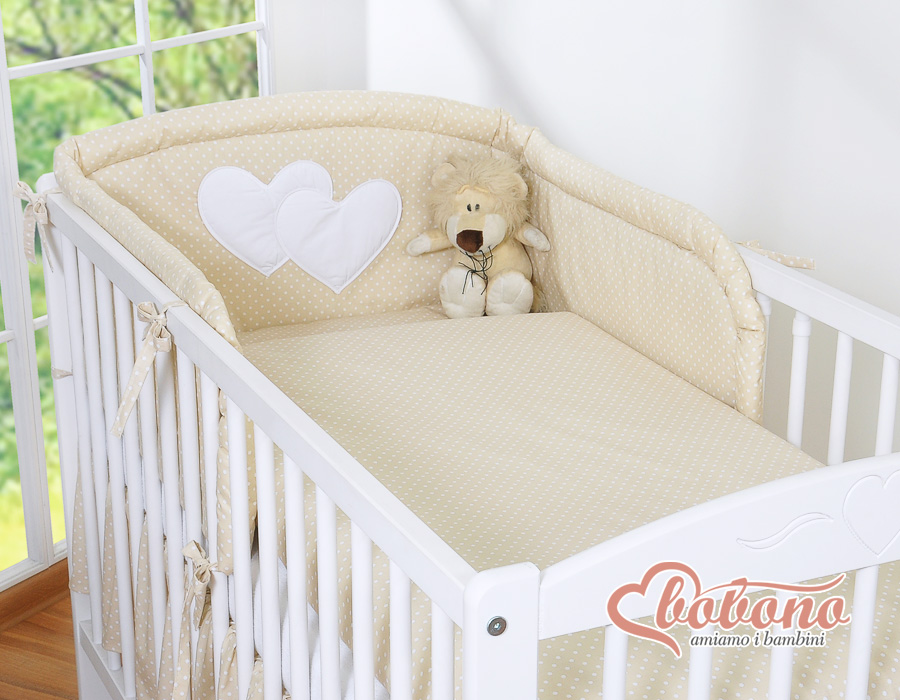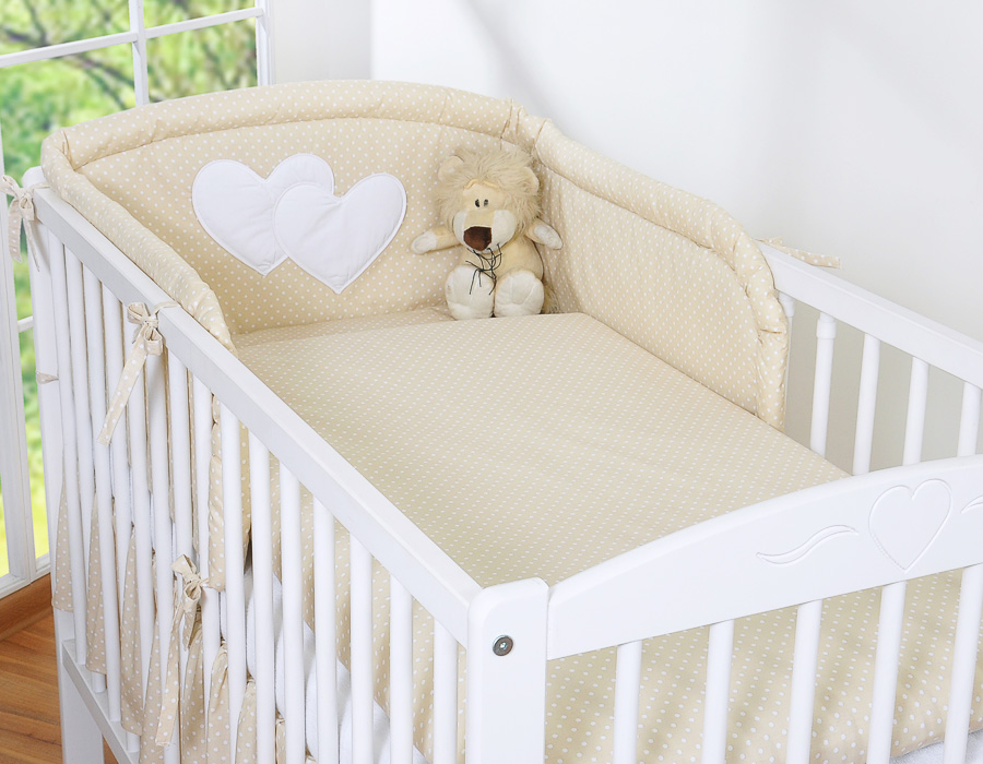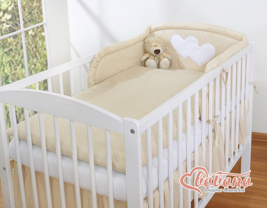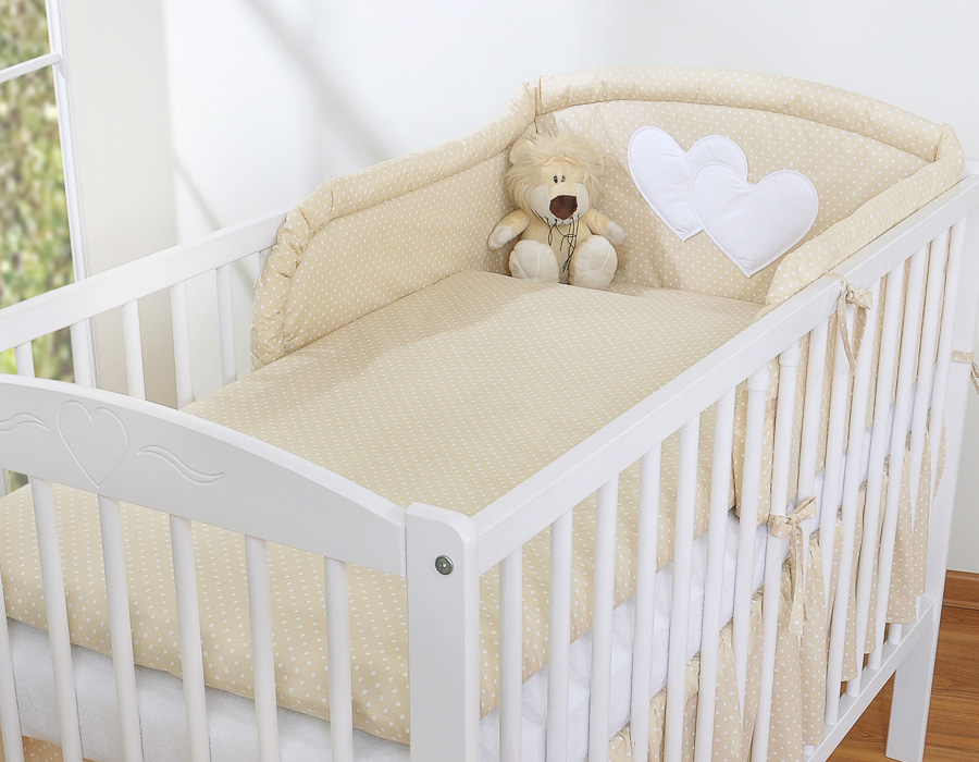 For cot 60x120cm and 70x140cm. Beige On Dots Polka White Hearts Hanging 2-pcs- Bed Baby For Bedding