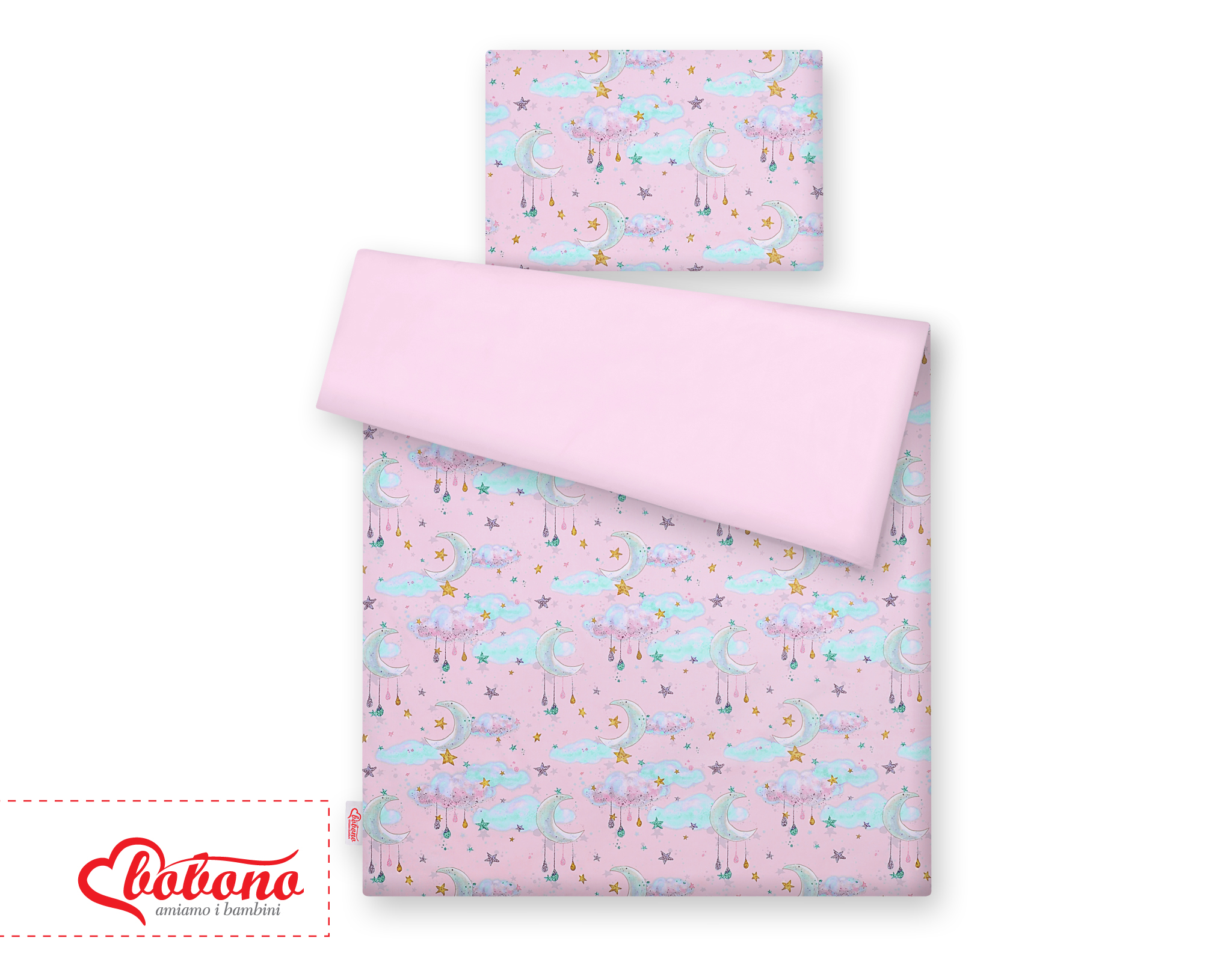 Bedding set for Baby Bed 2-pcs- moons pink