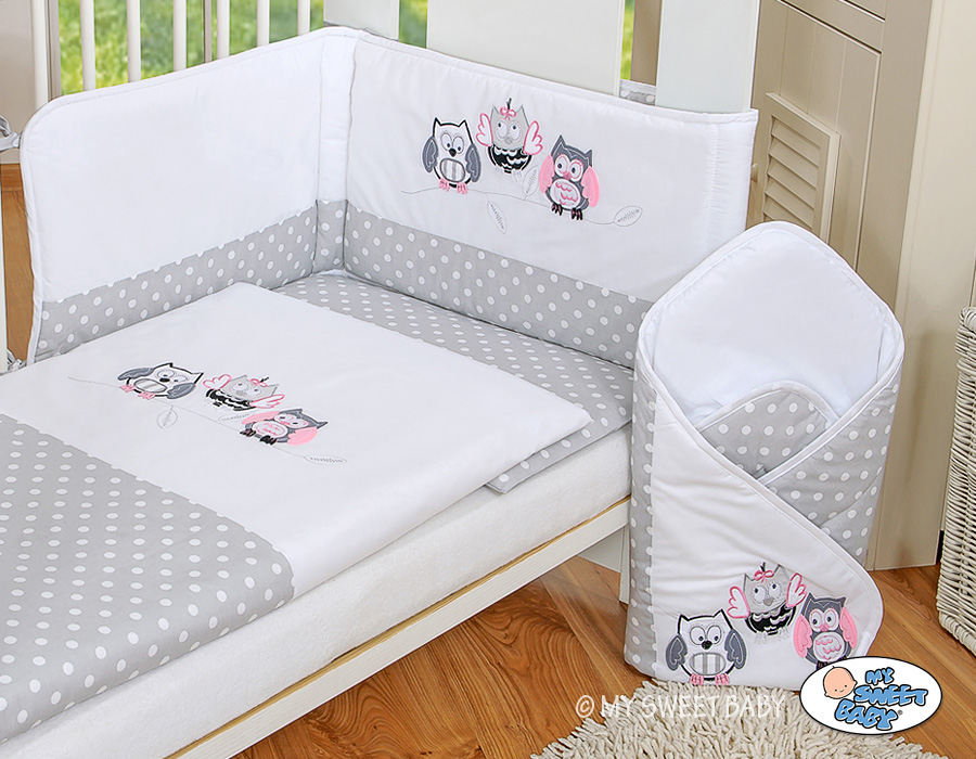 Gray-pink Owls 2-pcs- Bed Baby For Bedding