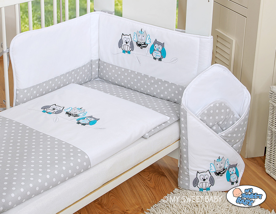 Bedding set for Baby Bed 2-pcs- Owls Gray-turquoise
