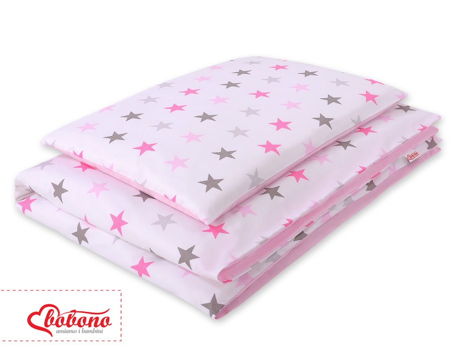 Bedding set for Baby Bed 2-pcs - stars gray - pink /pink