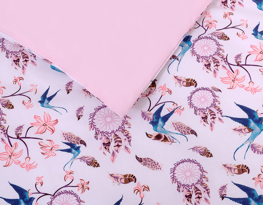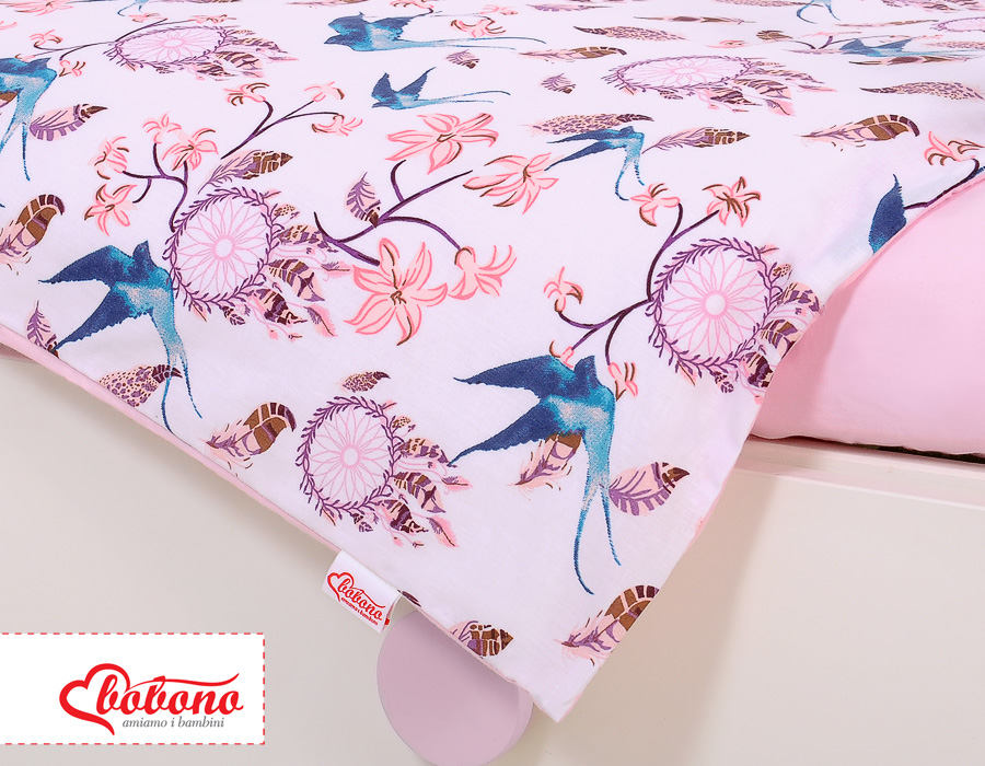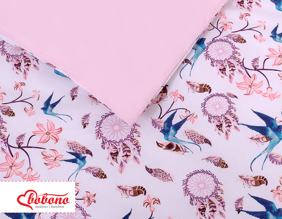 2. Double-sided quilt cover 120x90cm or 135x100cm. Made of 100% cotton fabric, certified Oeko-tex Standard 100. Pillow fastened with a indoor zip, which facilitates a quick change of bedding.