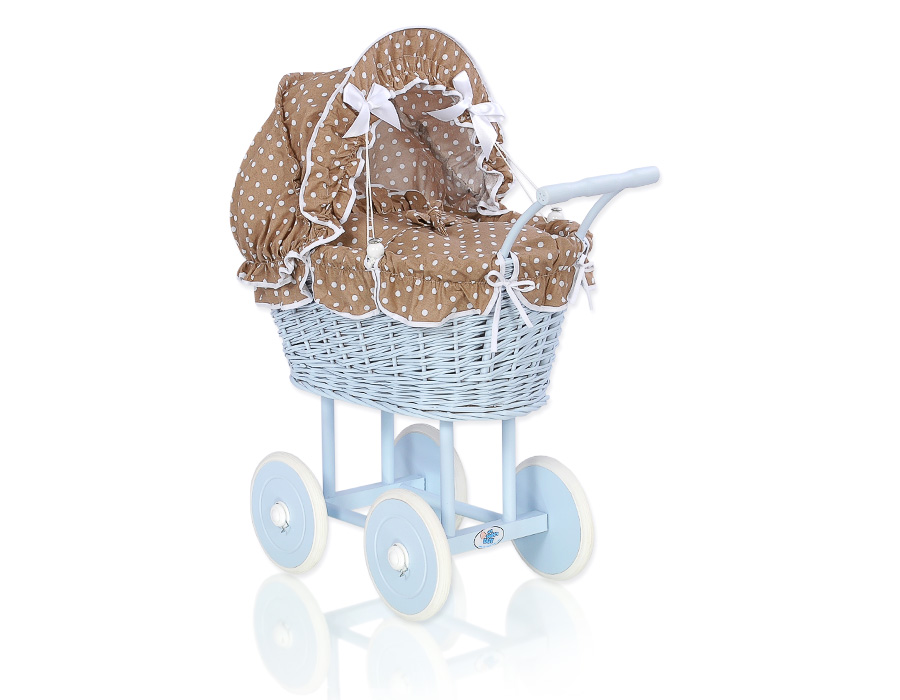 Baby Shop » Baby Toys » Doll prams » Wicker Doll prams » Blue Wicker Dolls Prams » Blue Wicker Stroller Doll pram Bedding Set White Dots on Brown