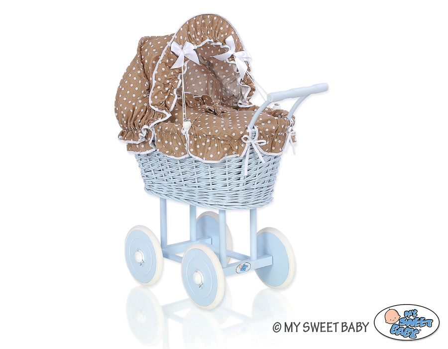 Blue Wicker Stroller Doll pram Bedding Set White Dots on BrownBlue Wicker Stroller Doll pram Bedding Set White Dots on BrownBlue Wicker Stroller Doll pram Bedding Set White Dots on Brown