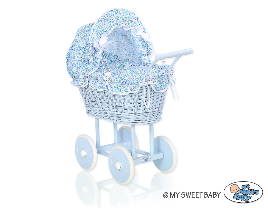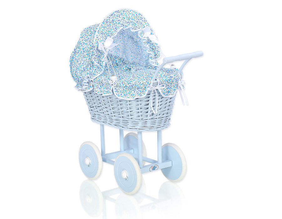 Baby Shop » Baby Toys » Doll prams » Wicker Doll prams » Blue Wicker Dolls Prams » Blue Wicker Stroller Doll pram Blue Flowers Bedding Set