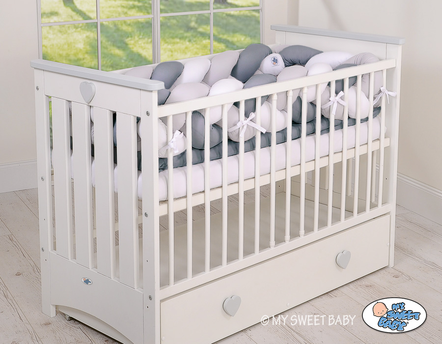 The bumper protects your baby's hands and feet from getting stuck between the spindles as well as it protects the baby's head and body from hitting against the cot walls. With the included cotton bows, the nest can be fixed to the bars.
