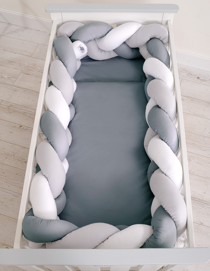 Beautiful, very soft braided cot bumper made from 100% cotton. Can be fixed to the bars.
