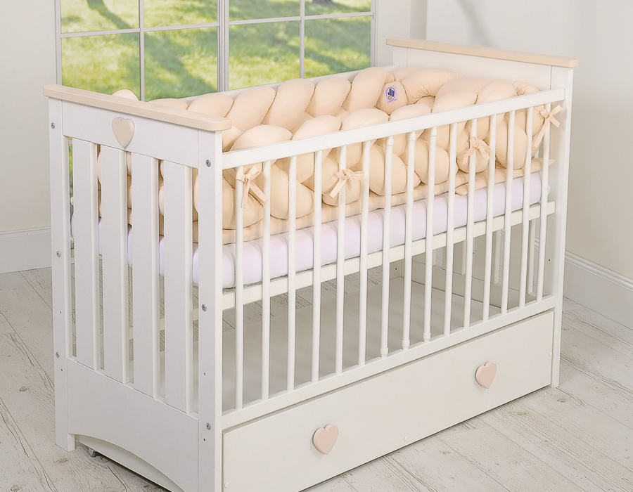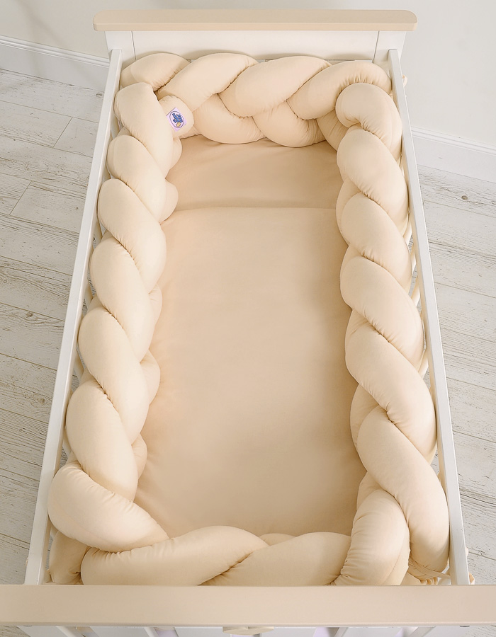 Beautiful, very soft braided cot bumper made from 100% cotton. Can be fixed to the bars.