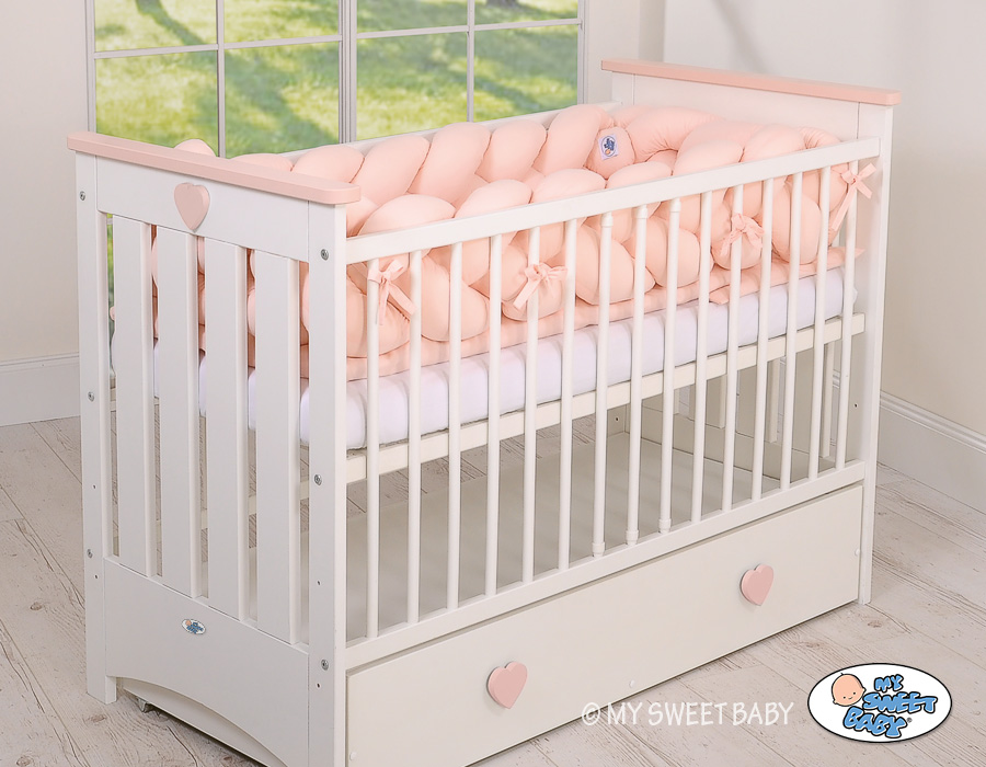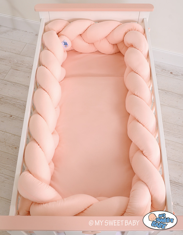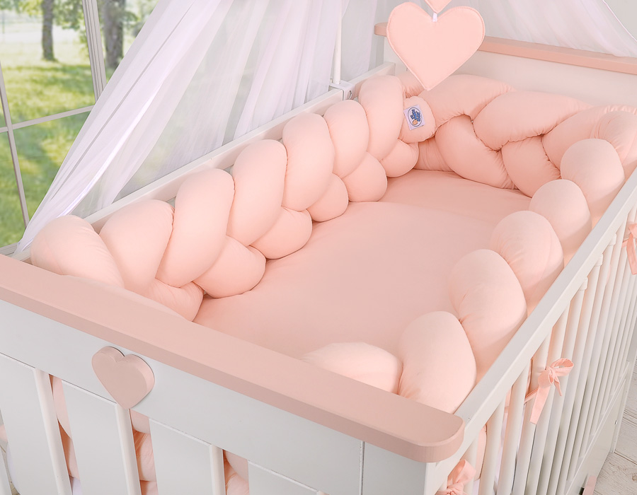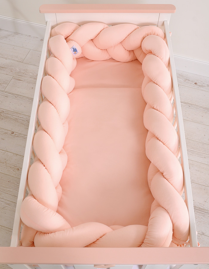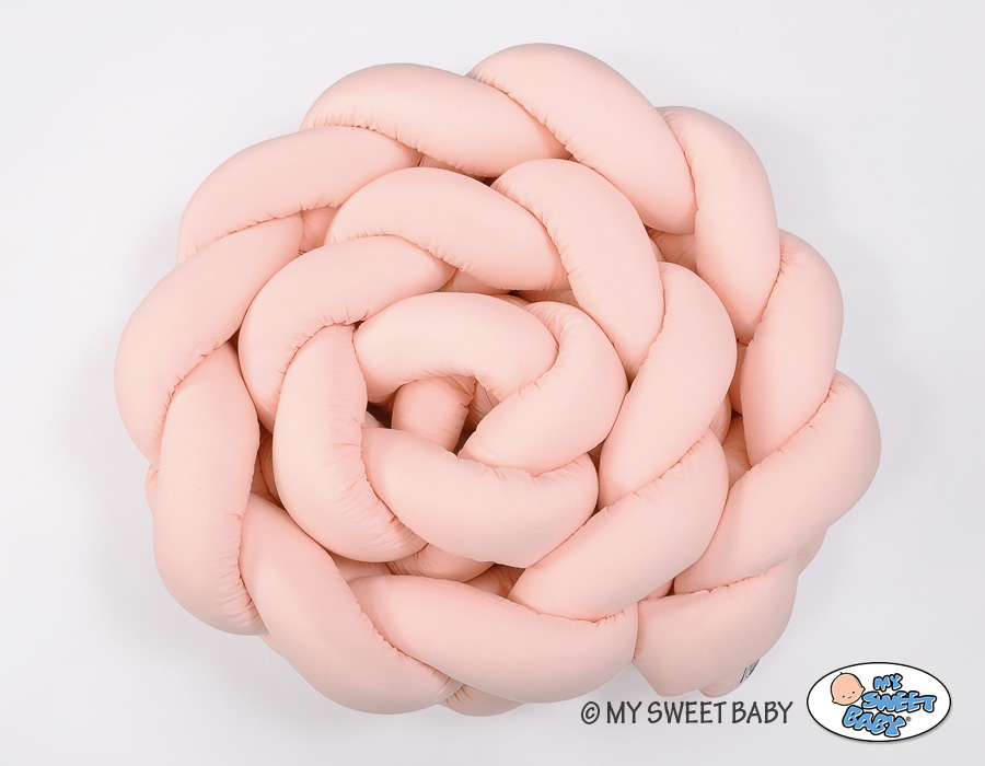 Braided Cushion Extra Long Knot bumper XXL Pillow- powder pink Beautiful, very soft braided cot bumper made from 100% cotton. Can be fixed to the bars.