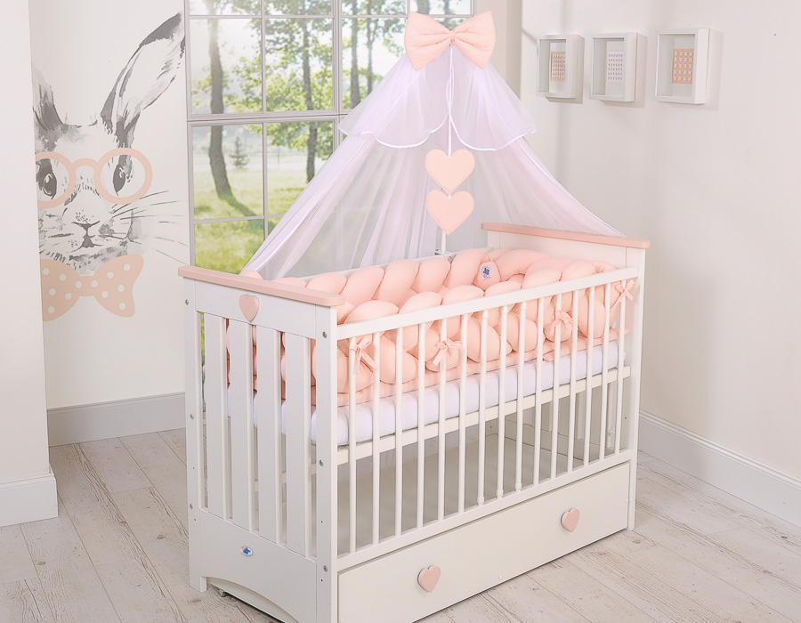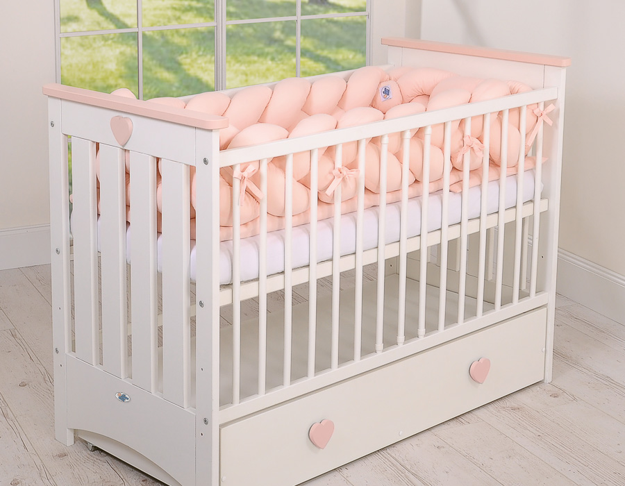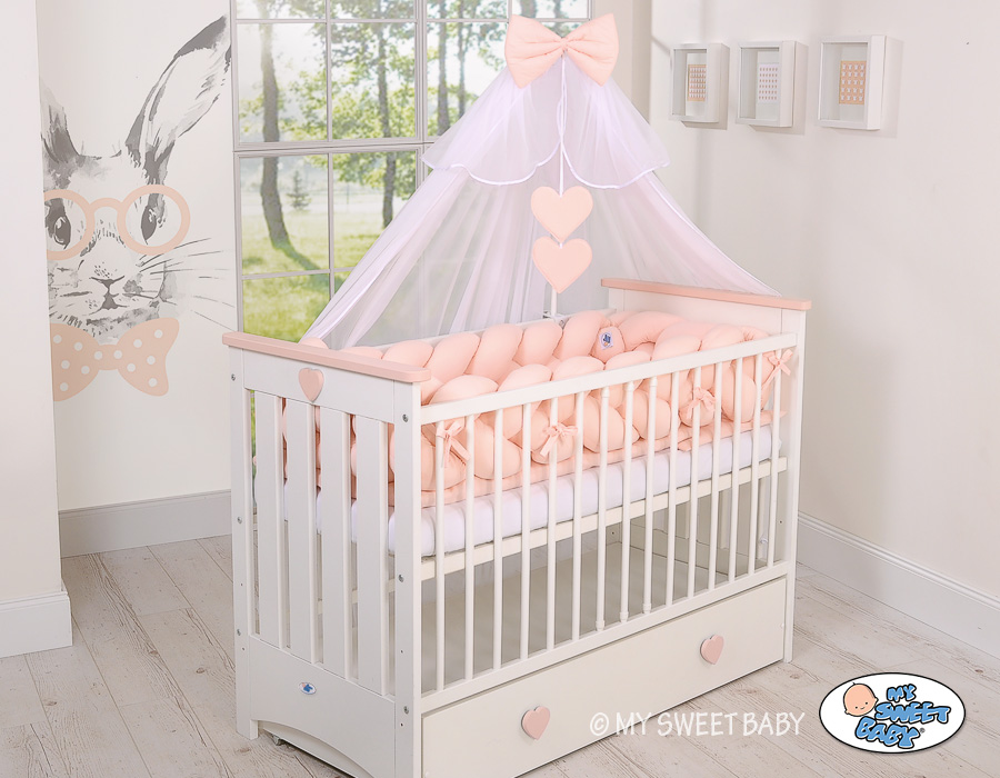 The bumper protects your baby's hands and feet from getting stuck between the spindles as well as it protects the baby's head and body from hitting against the cot walls. With the included cotton bows, the nest can be fixed to the bars. Compared with standard bumpers allows this one for more air flow between the cot and outside.