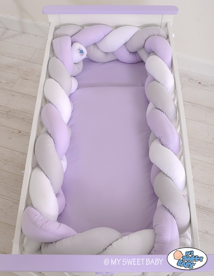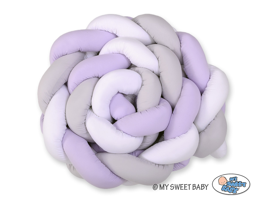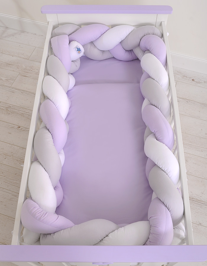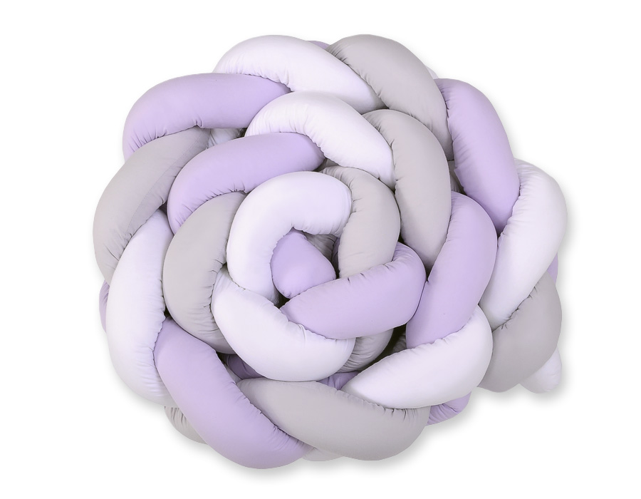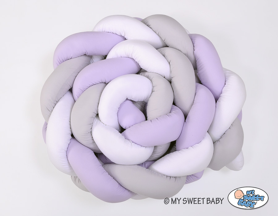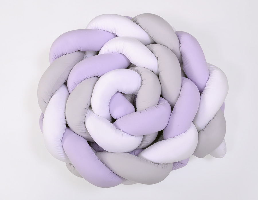 Braided Cushion Extra Long Thick Knot bumper XXL Pillow- white-gray-lilac Beautiful, very soft braided cot bumper made from 100% cotton. Can be fixed to the bars.