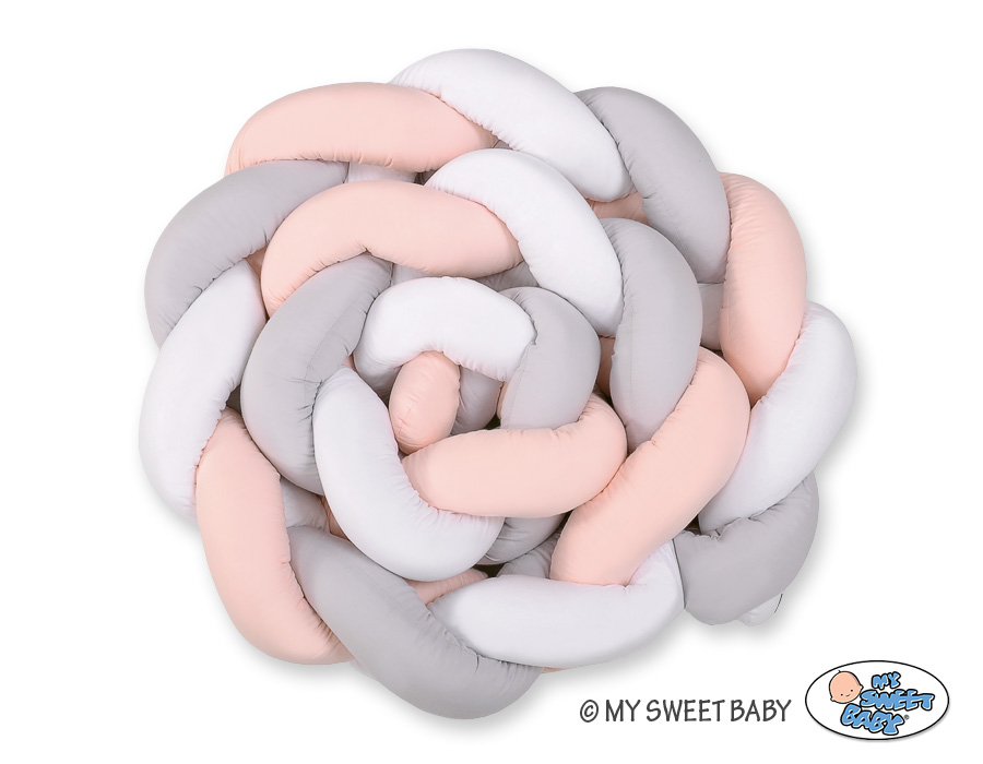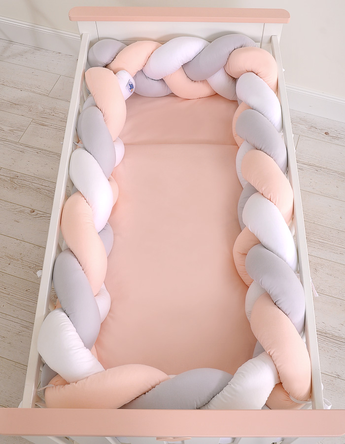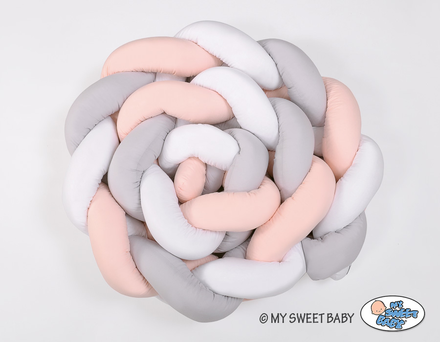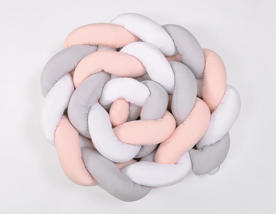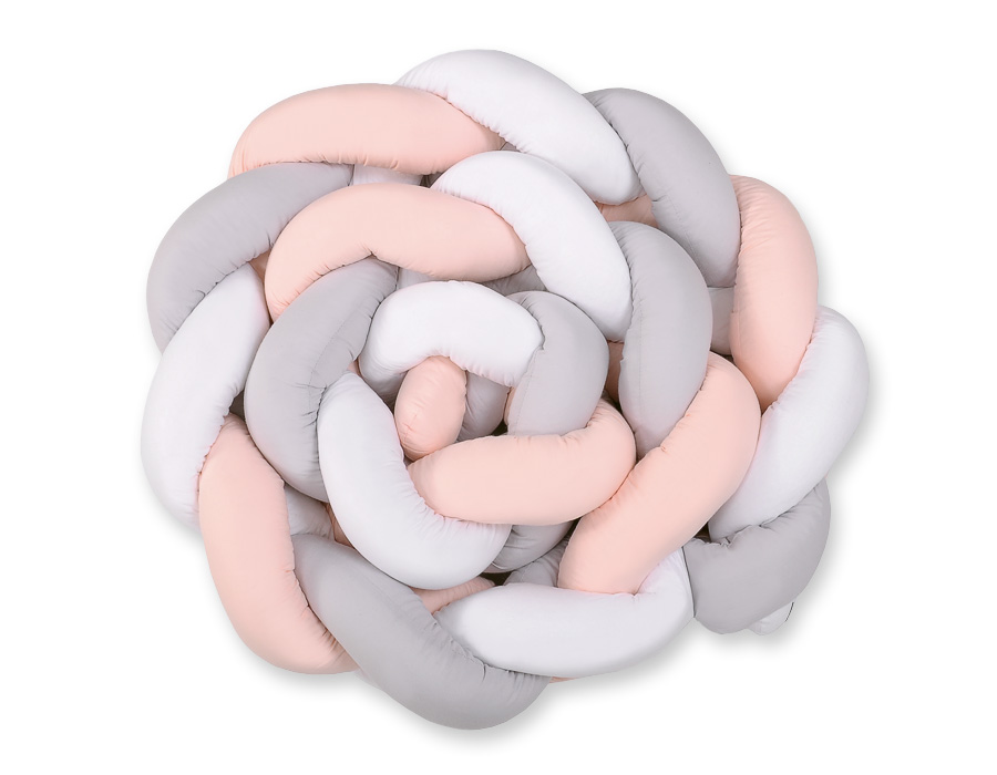 Braided Cushion Extra Thick Knot bumper 3m XXL Pillow- white-gray - powder pink Beautiful, very soft braided cot bumper made from 100% cotton. Can be fixed to the bars.