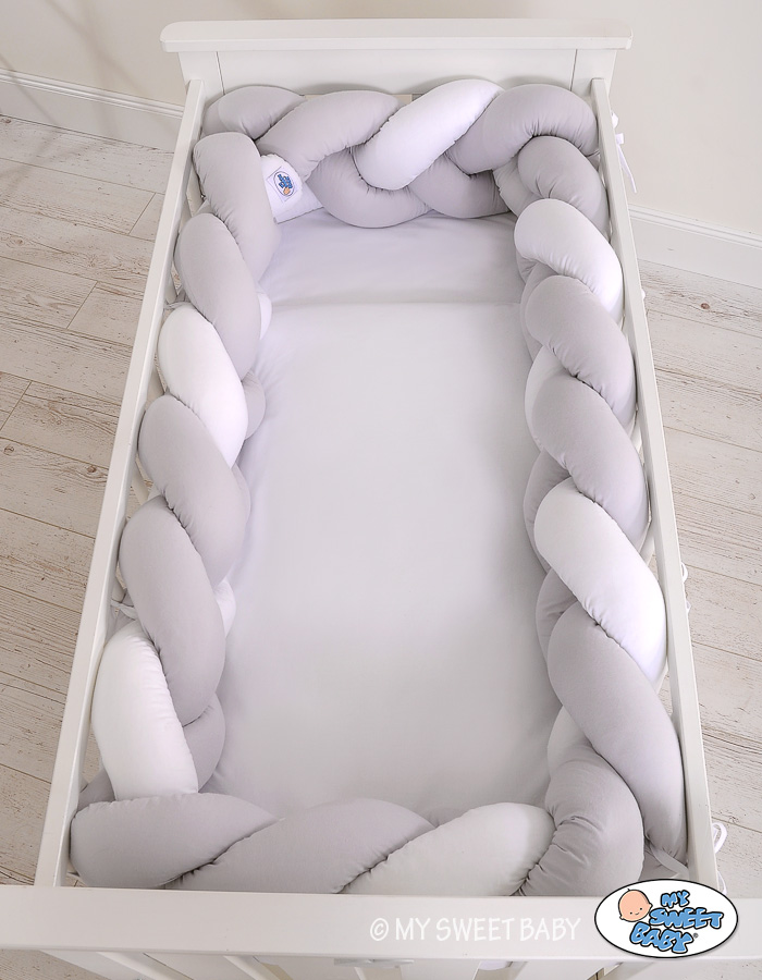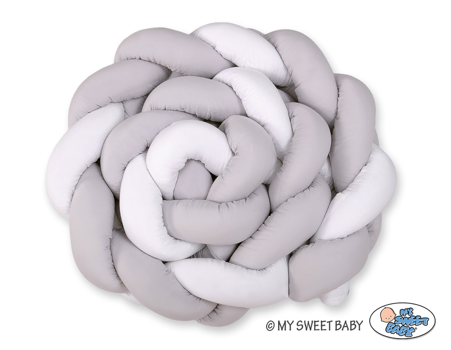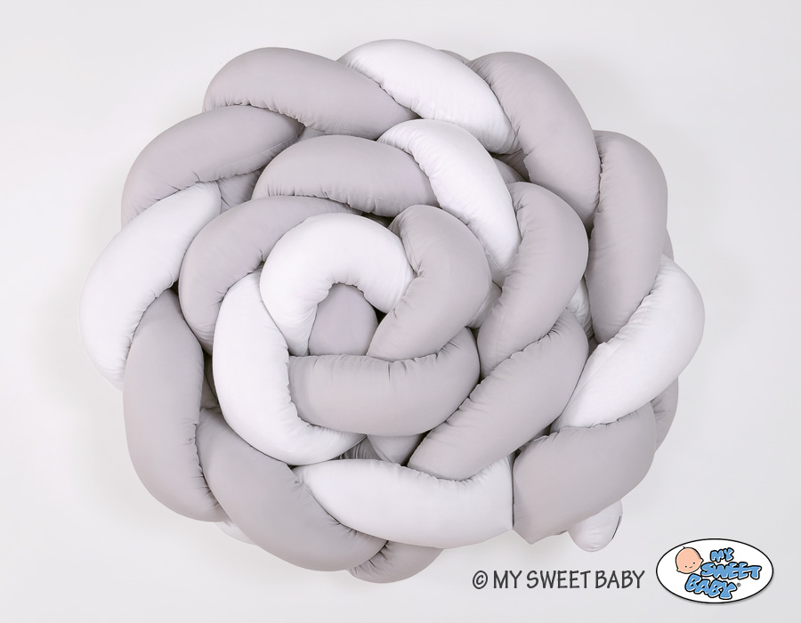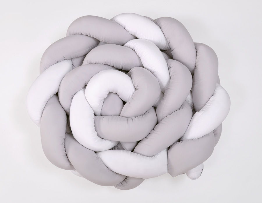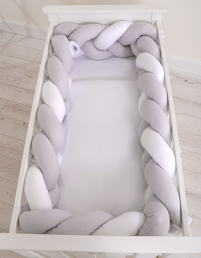 Braided Cushion Extra Thick Long Knot bumper over 3m XXL Pillow- white-gray Beautiful, very soft braided cot bumper made from 100% cotton. Can be fixed to the bars.