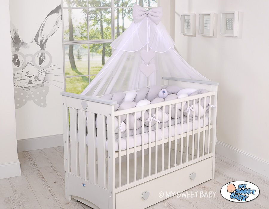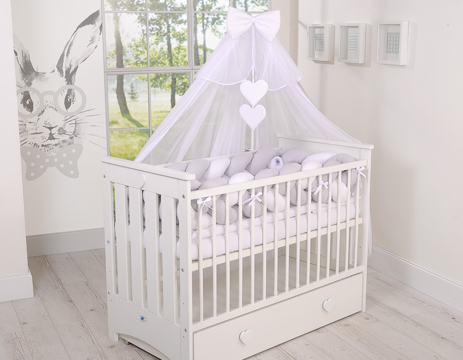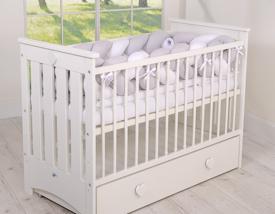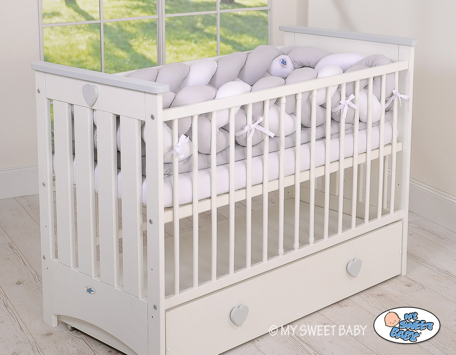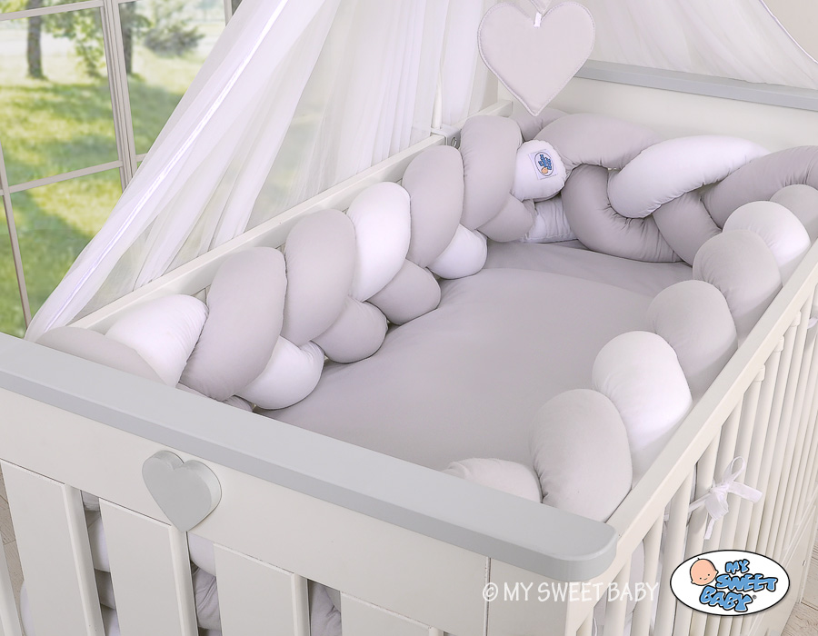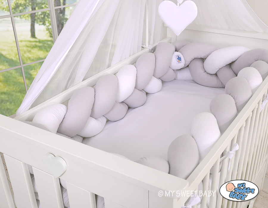 Braided Cushion Extra Thick Long Knot bumper over 3m XXL Pillow- white-gray Beautiful, very soft braided cot bumper made from 100% cotton. Can be fixed to the bars.