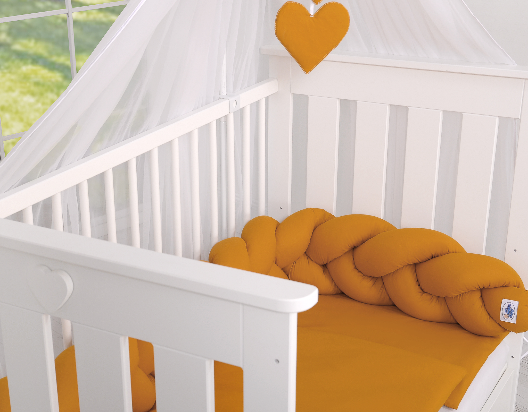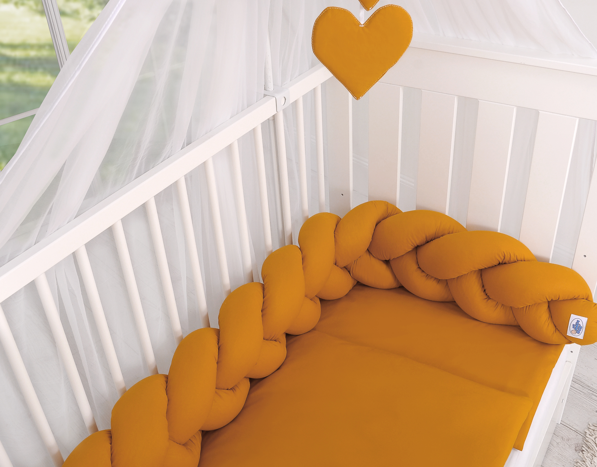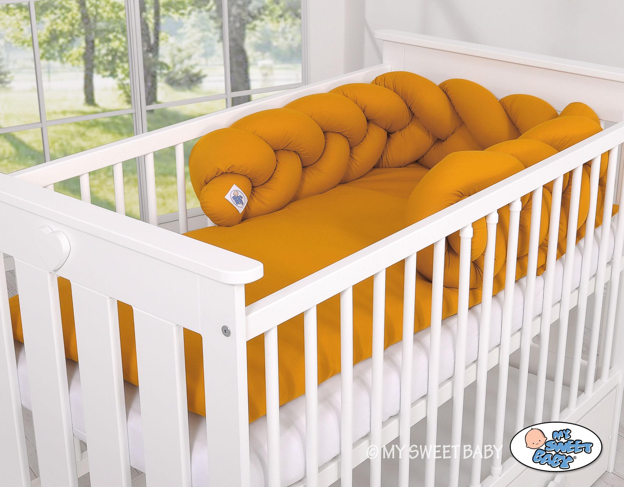 Braided Cushion Pillow Knot bumper- honey yellow Beautiful, very soft braided cot bumper made from 100% cotton. Can be fixed to the bars.