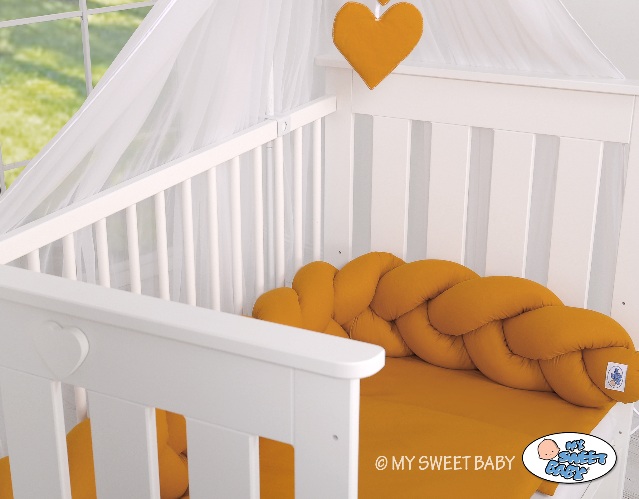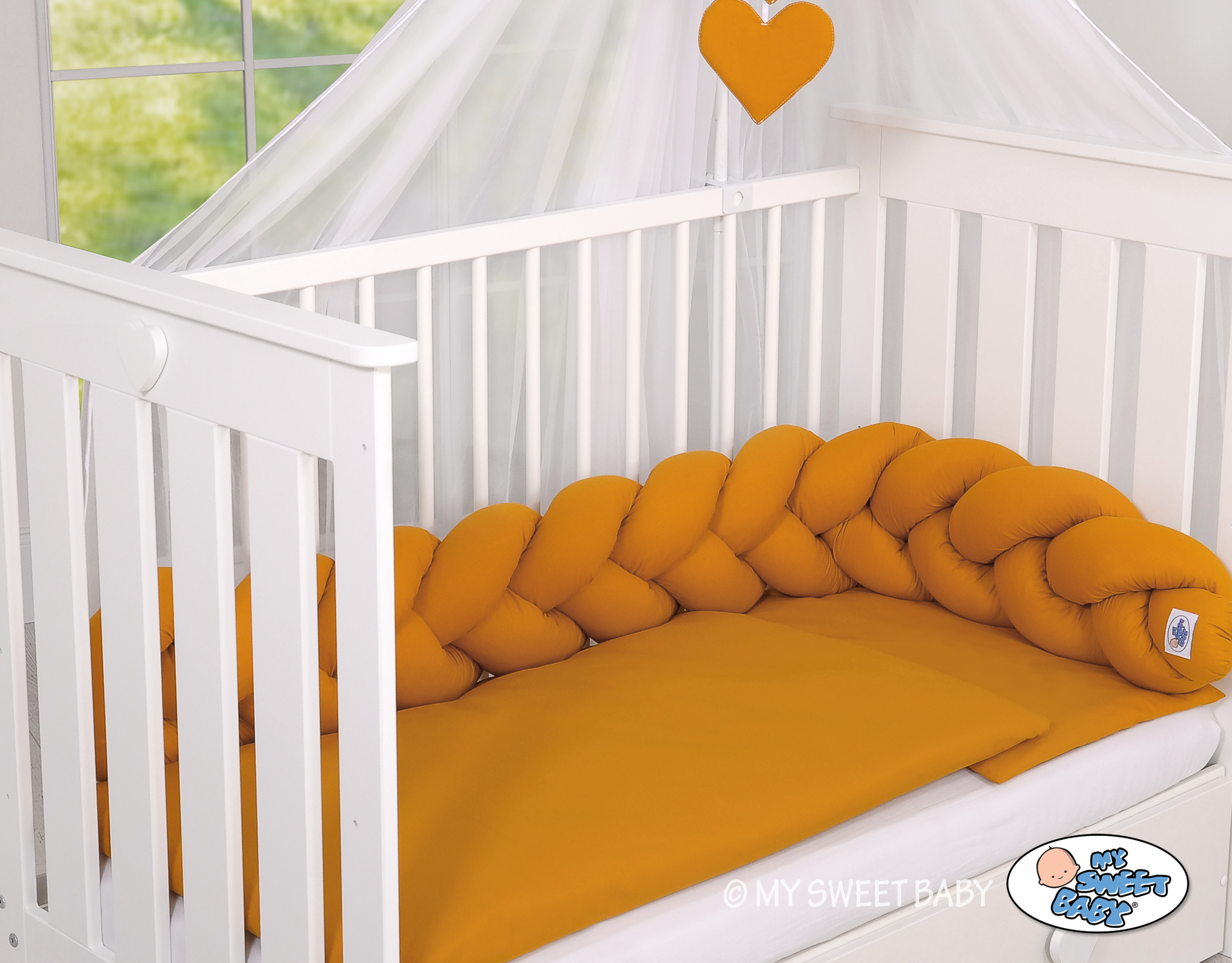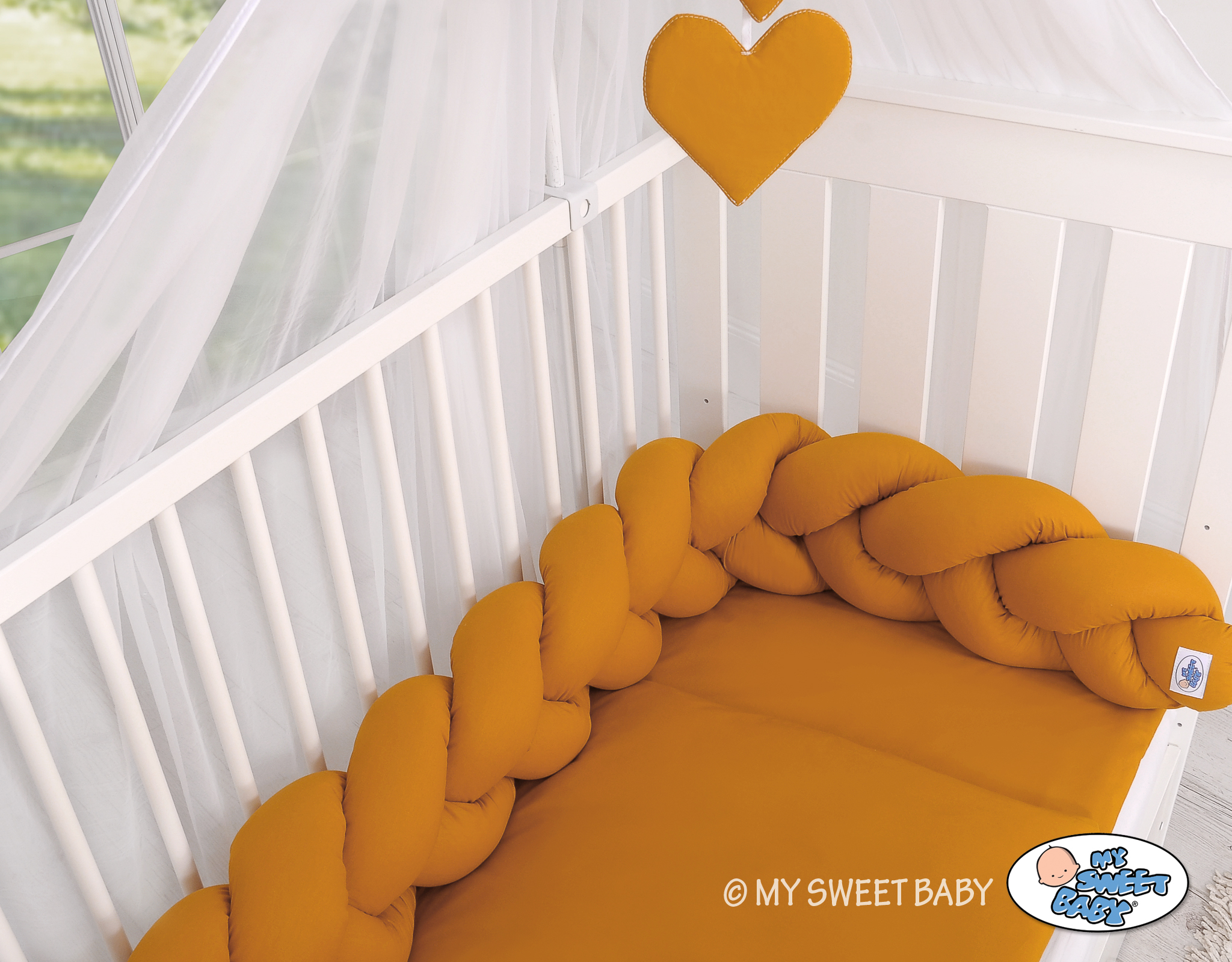 Braided Cushion Pillow Knot bumper- honey yellow Beautiful, very soft braided cot bumper made from 100% cotton. Can be fixed to the bars.