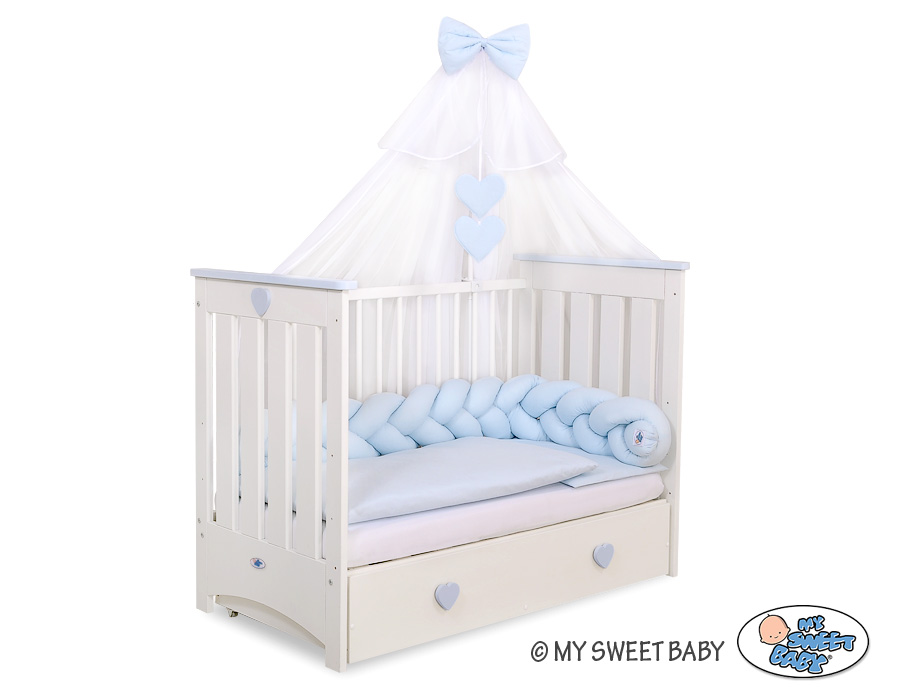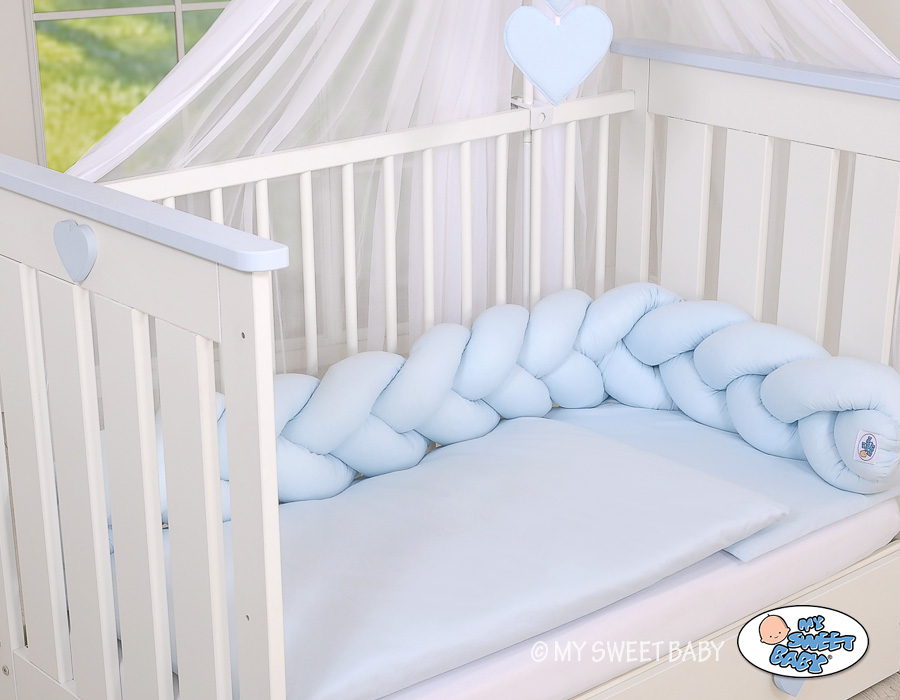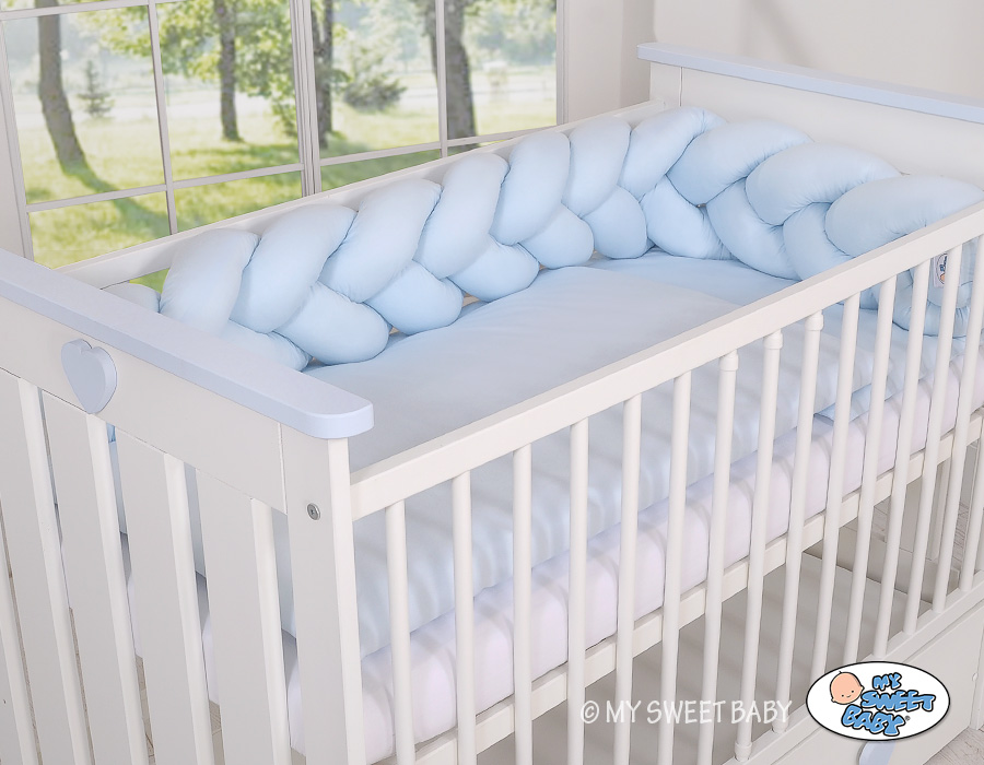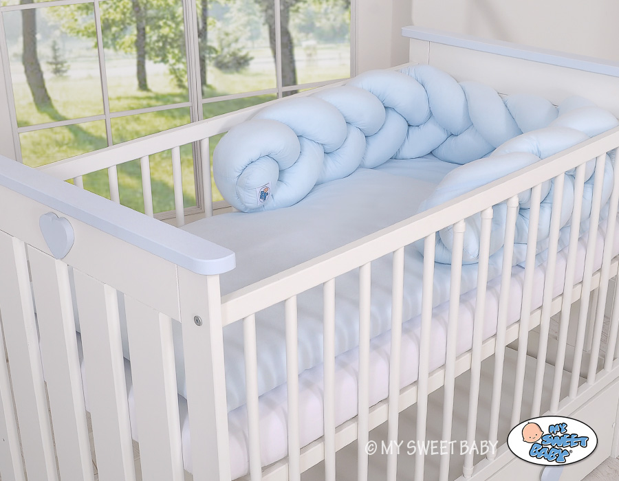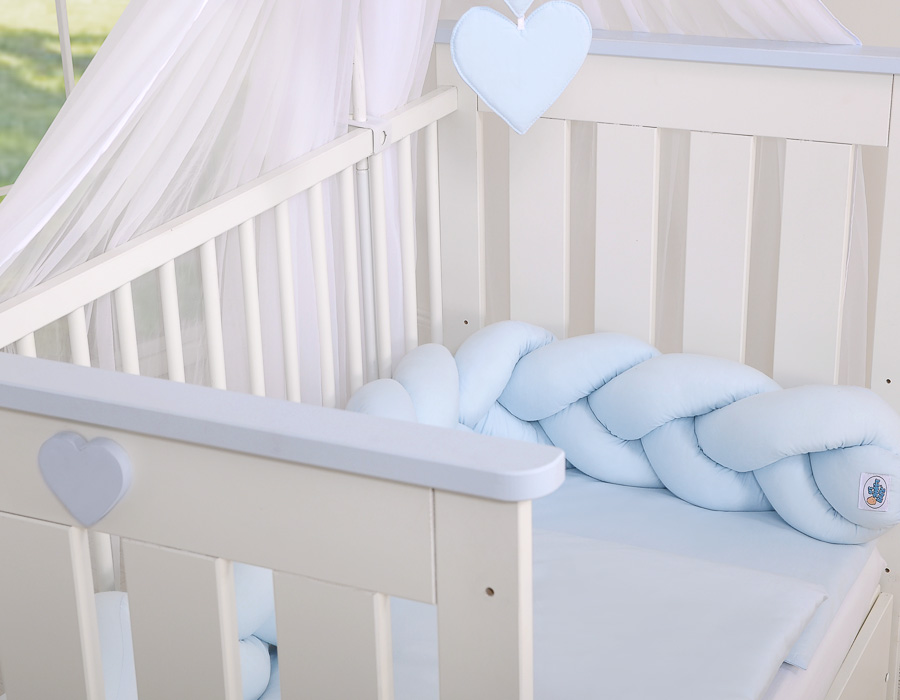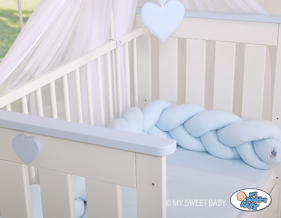 Braided Knot bumper- white-blue Beautiful, very soft braided cot bumper made from 100% cotton. Can be fixed to the bars.