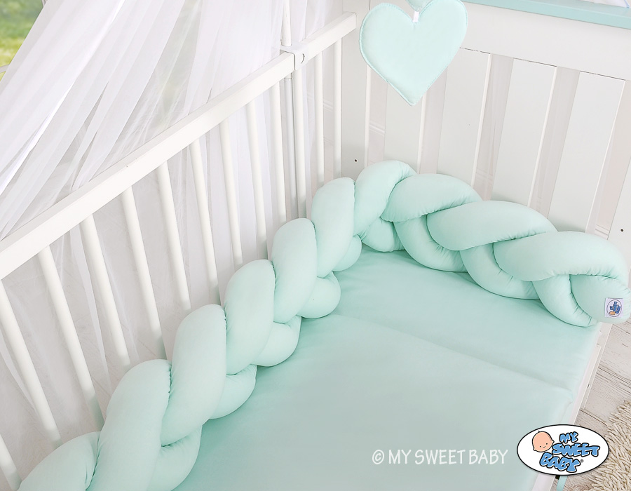 Braided Knotted Baby Crib/Cot Bumper- mint Beautiful, very soft braided cot bumper made from 100% cotton. Can be fixed to the bars.