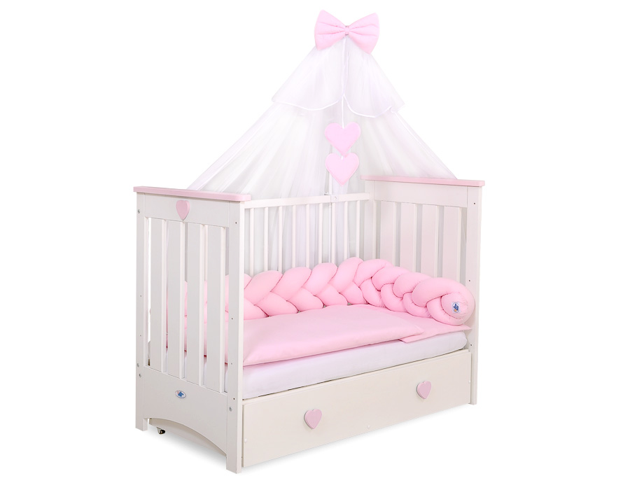 The bumper protects your baby's hands and feet from getting stuckbetween the spindles as well as it protects the baby's head and bodyfrom hitting against the cot walls.With the included cotton bows, the nest can be fixed to the bars. Compared with standard bumpers allows this one for more air flow between the cot and outside.