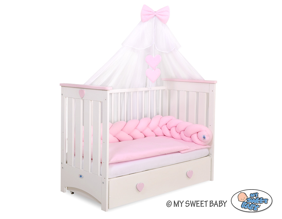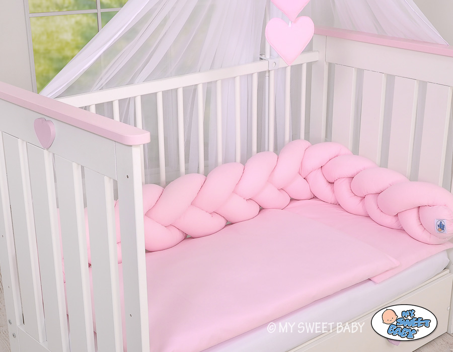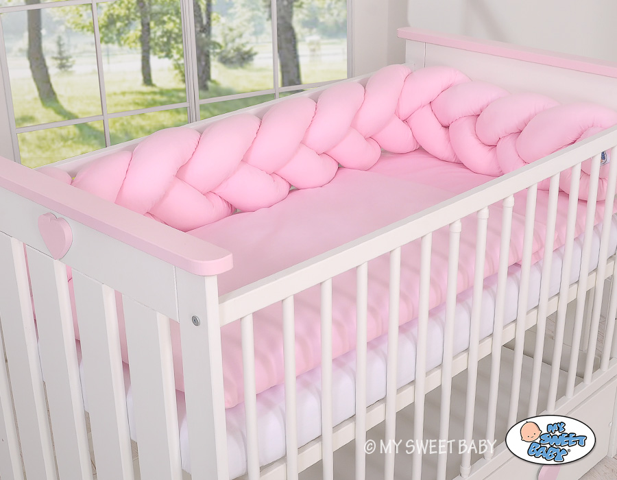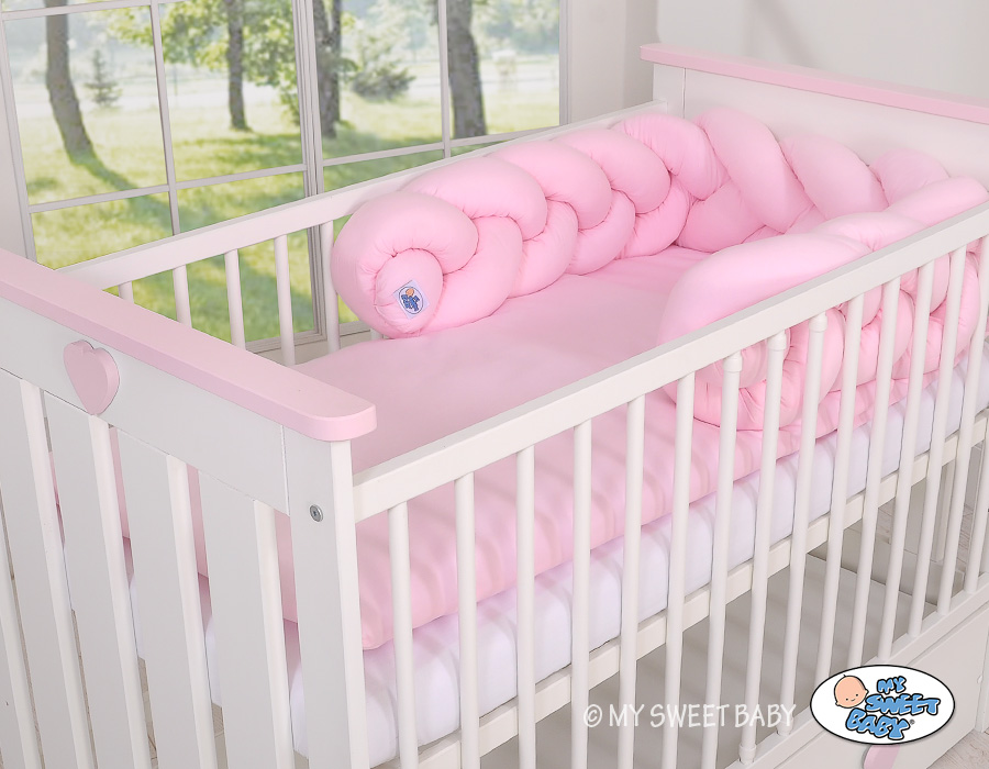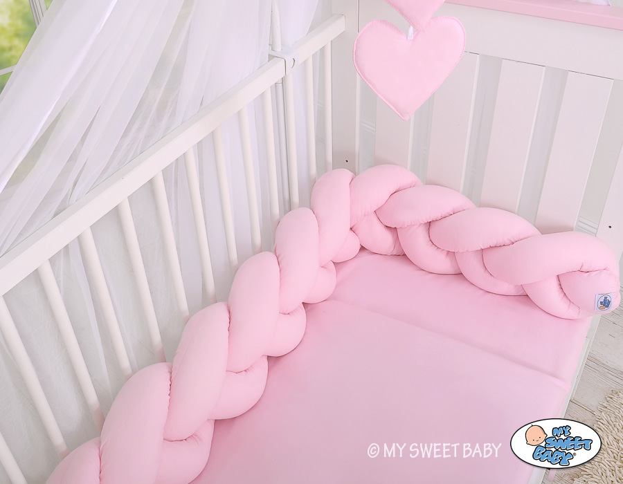 Braided Knotted bumper- pink Beautiful, very soft braided cot bumper made from 100% cotton. Can be fixed to the bars.