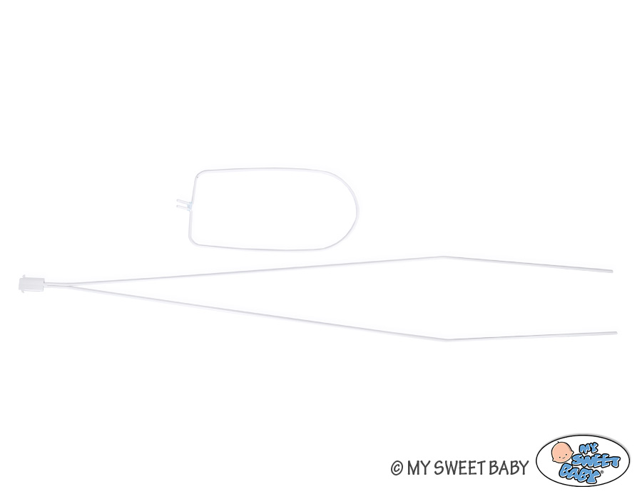 The cradle canopy frame is composed of two strong wires which were connected and profiled in an appropriate way. An upper part is connected to an oval-shaped wire on which the canopy is placed. The lower part of the canopy frame is an element is to be fixed to the wicker bassinet.