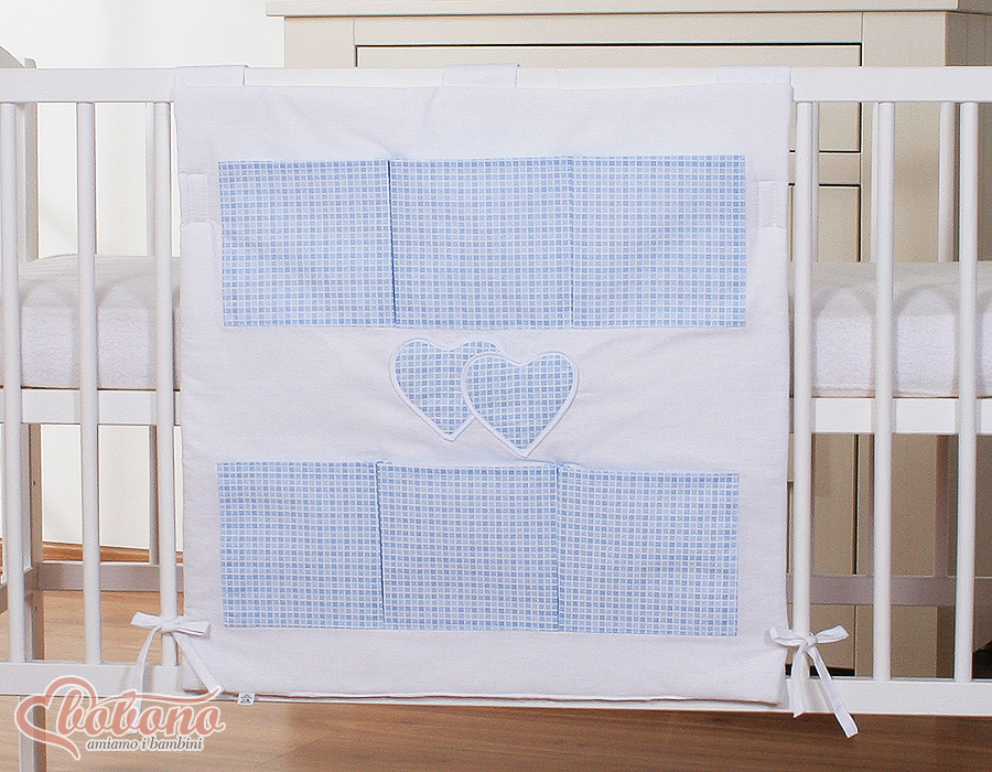 Cot tidy with 6 practical storage bags for toys, diapers, wipes, pacifiers, or any other essentials.