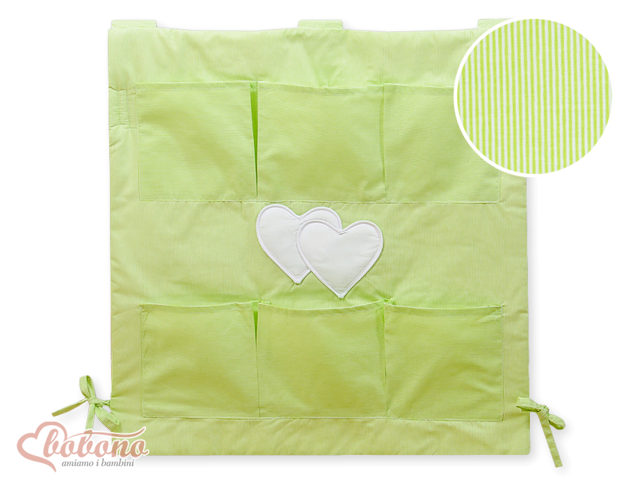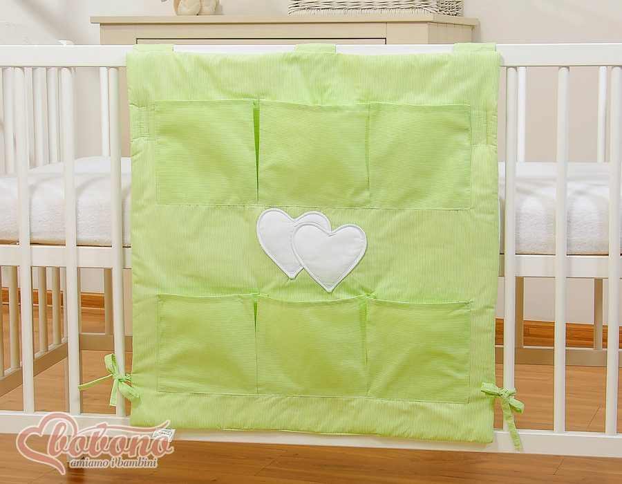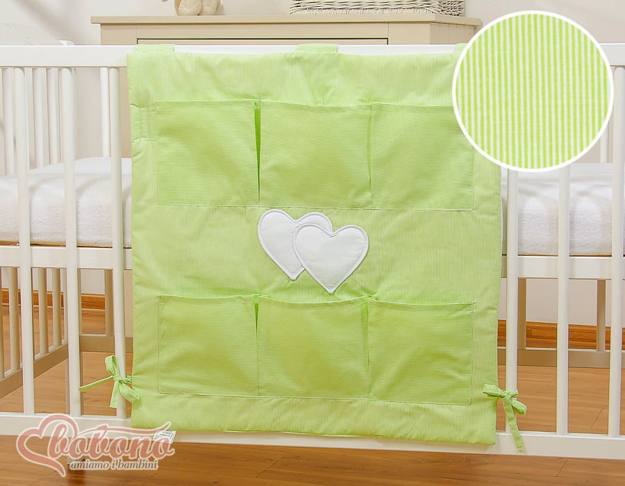 Cot tidy with 6 practical storage bags for toys, diapers, wipes, pacifiers, or any other essentials.