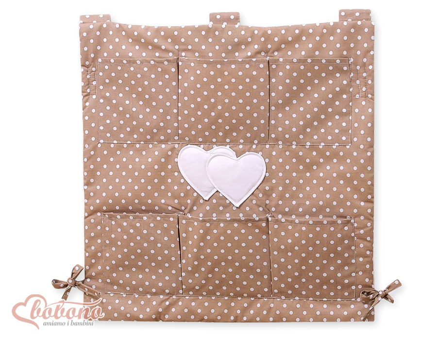 Cot tidy with 6 practical storage bags for toys, diapers, wipes, pacifiers, or any other essentials.
