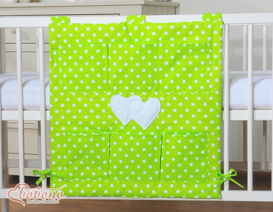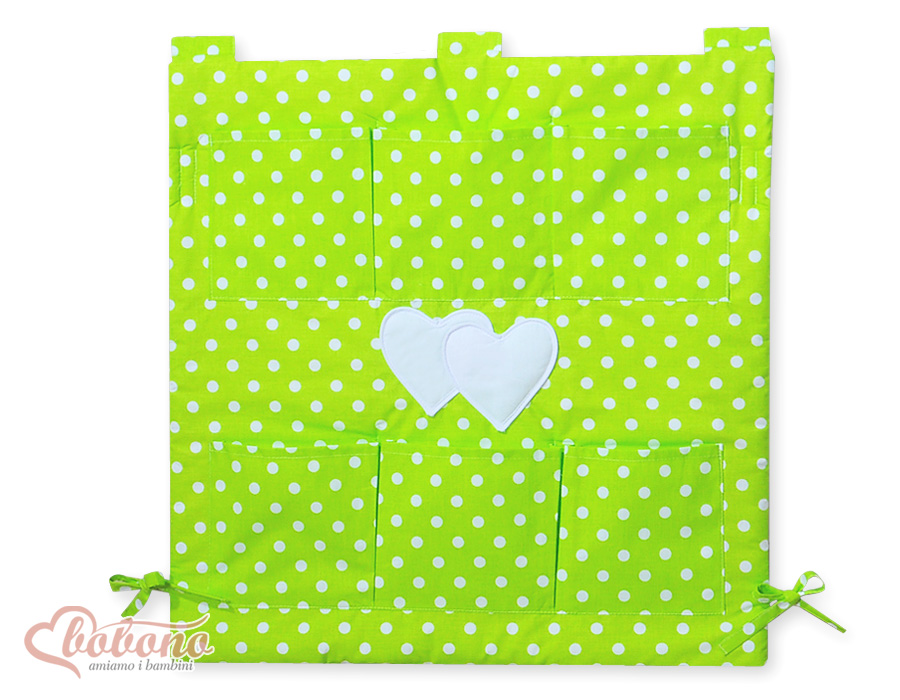 Baby Shop » Bedding sets for cots and beds » Collection HEARTS » Cot Tidy » Cot tidy organiser - Hanging Hearts white dots on green