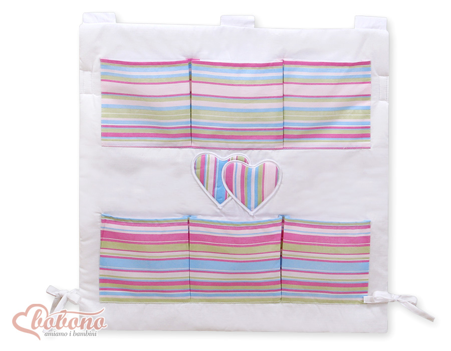 Baby Shop » Bedding sets for cots and beds » Collection HEARTS » Cot Tidy » Cot tidy organiser with Pockets for Cot Bed- Hanging Hearts lilac stripes