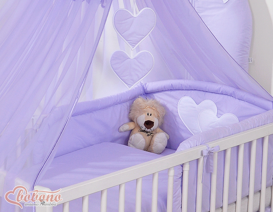 Lilac Hearts Hanging Mosquito-net- With 5-pcs Bedding Cotbed