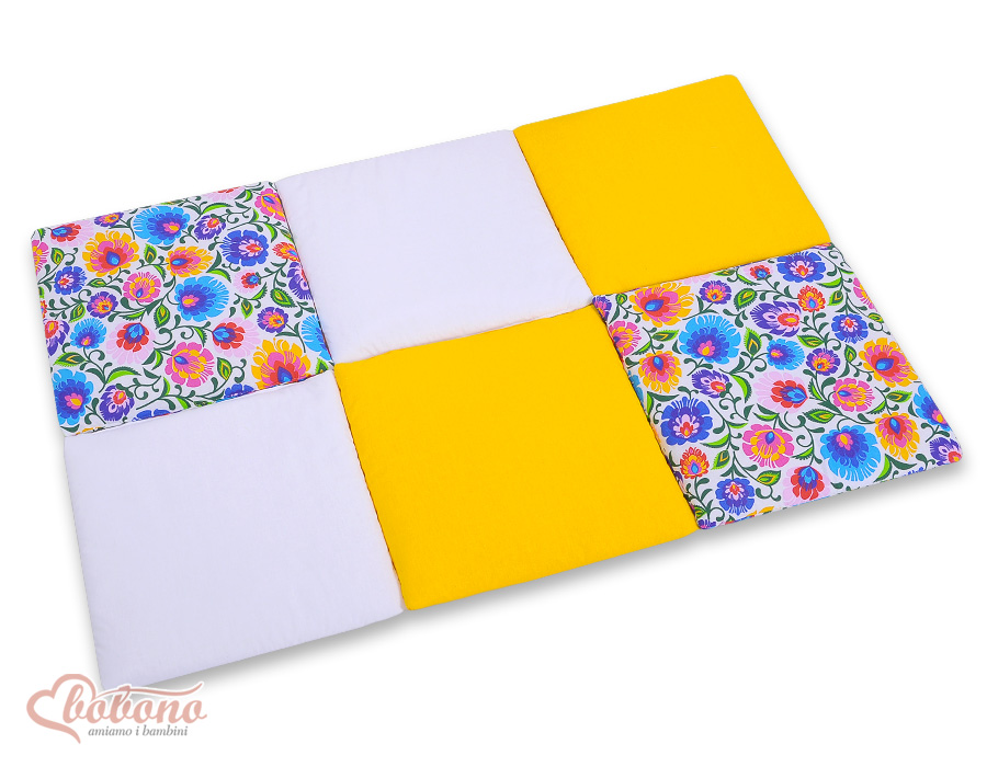3-8. Universal bumper 6pcs- the bumper is made of 6 pillows filled with a special non-allergic and breathable silicone Filling (certified OKOTEX). The size of one pillow is 32cm x 32cm. Cover of the bumper or made of 100% cotton. Pillows have fastening strips to match them each other. You can match the pillows in any order. It is a perfect decoration of baby cot. If we match every pillows together the bumper can be used as a playing mat for baby.