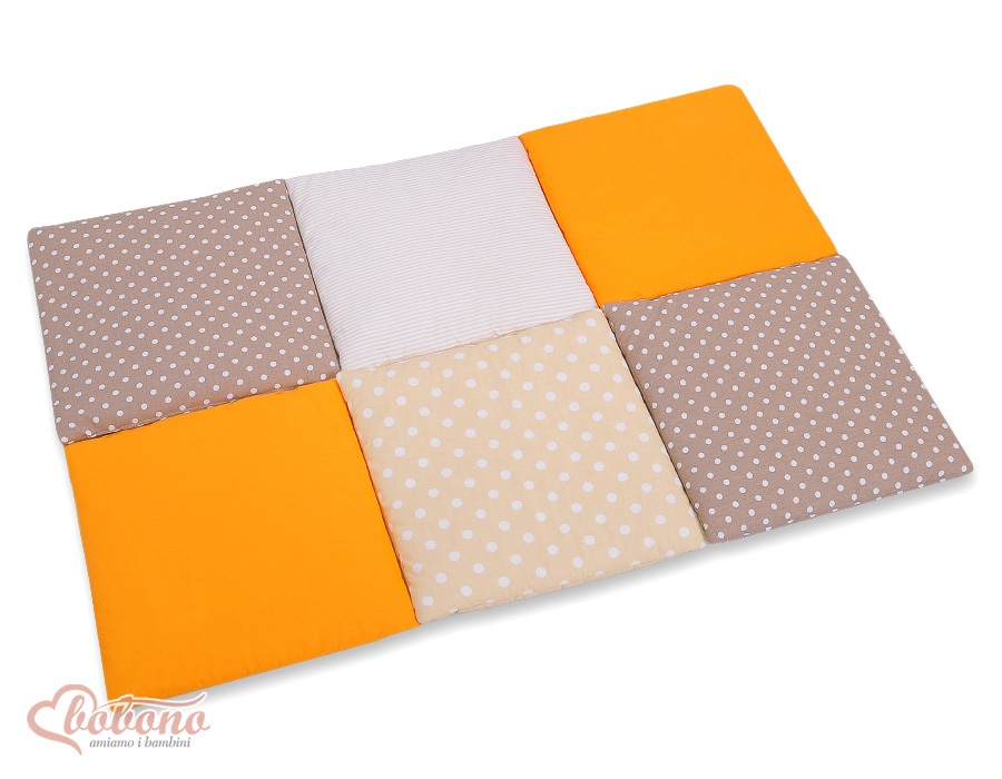 3-8. Universal bumper 6pcs- the bumper is made of 6 pillows filled with a special non-allergic and breathable silicone Filling (certified OKOTEX). The size of one pillow is 32cm x 32cm. Cover of the bumper or made of 100% cotton. Pillows have fastening strips to match them each other. You can match the pillows in any order. It is a perfect decoration of baby cot. If we match every pillows together the bumper can be used as a playing mat for baby.