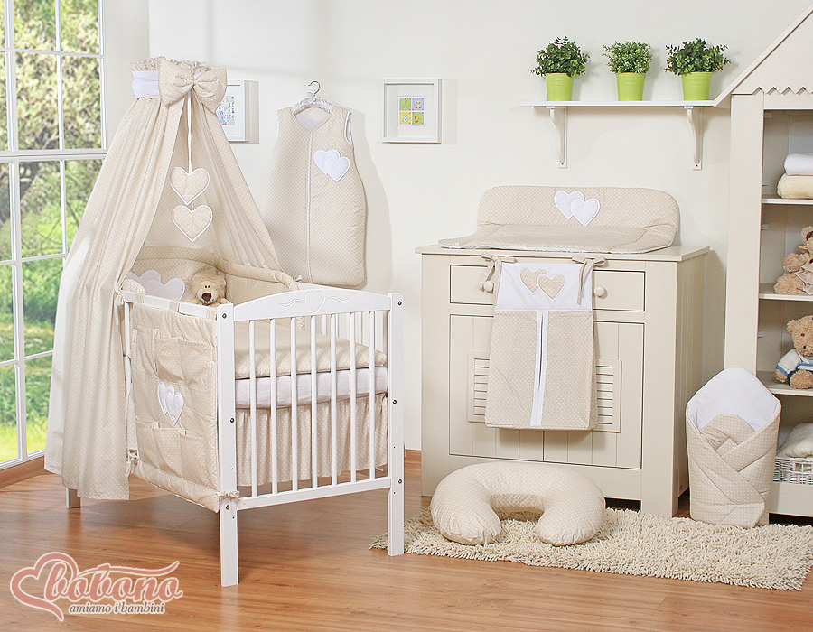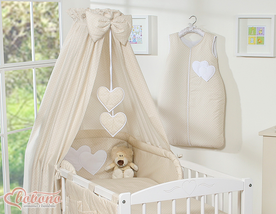 CotbedCanopy made of fabric- Hanging Hearts white polka dots on beigeCotbedCanopy made of fabric- Hanging Hearts white polka dots on beige