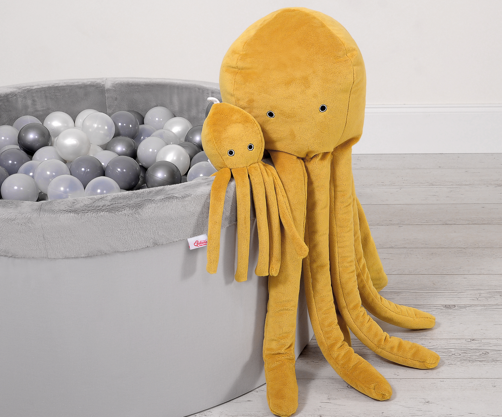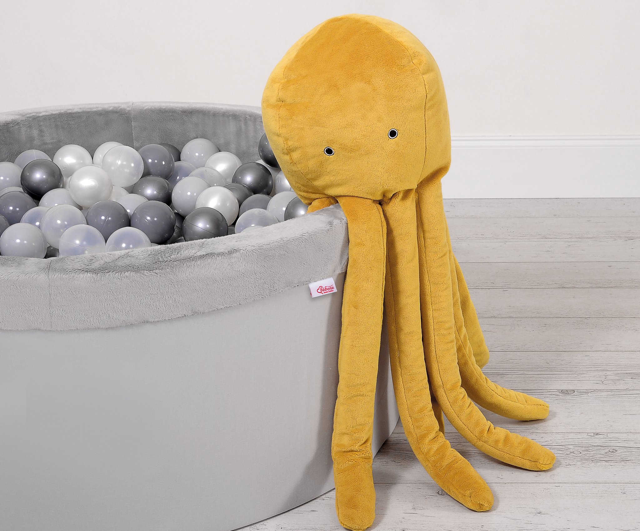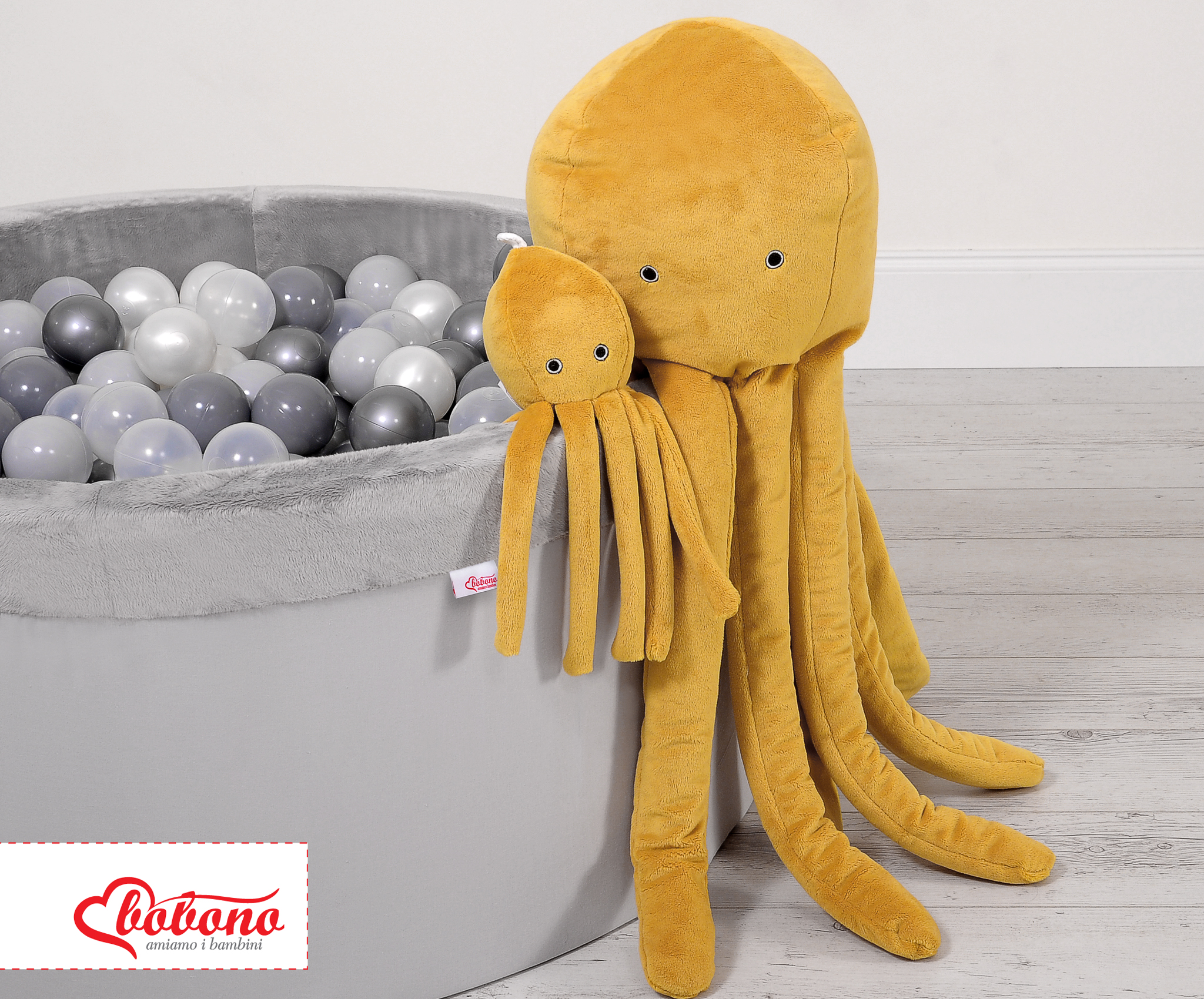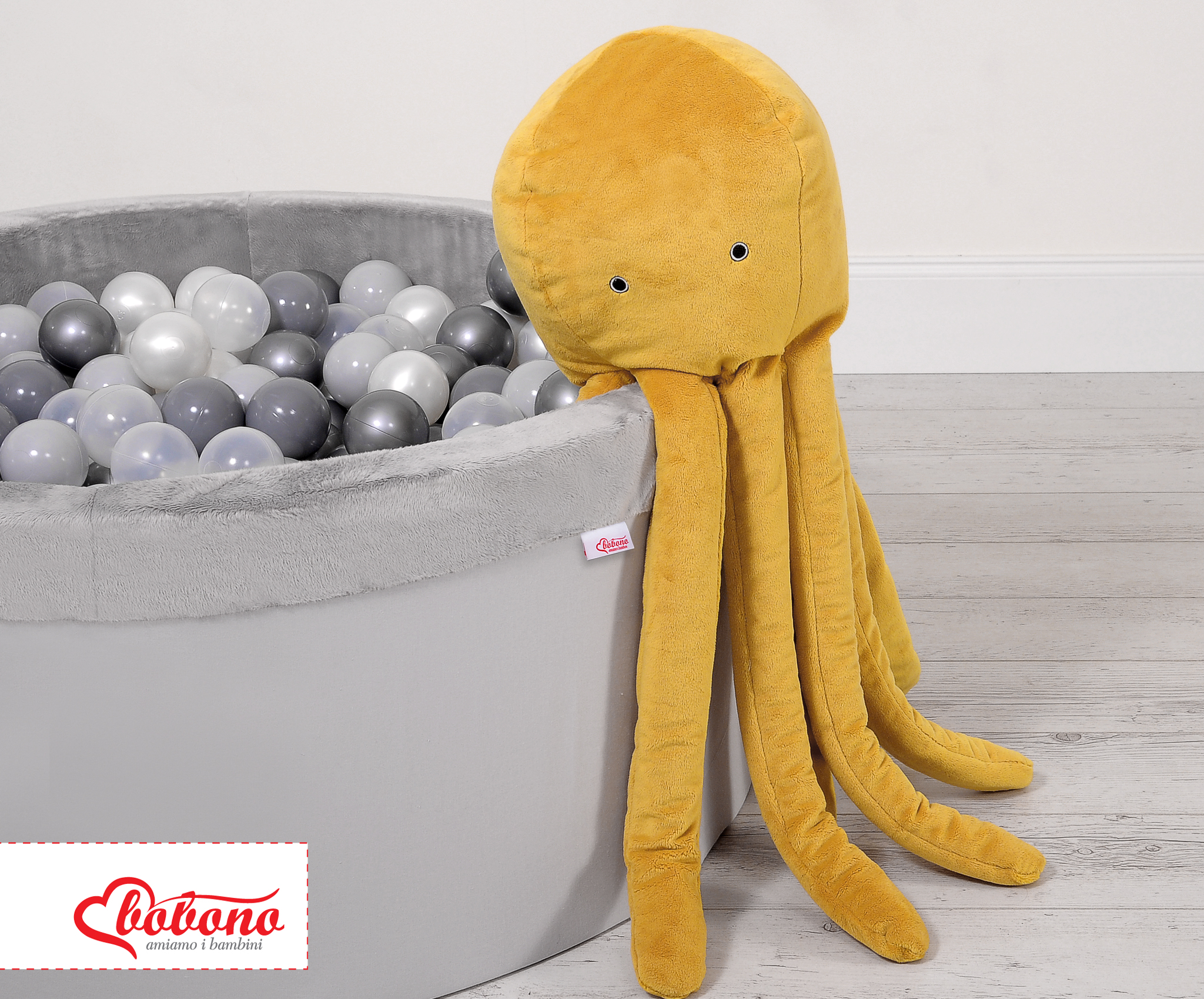 Funny cuddly octopus is perfect for sleeping and cuddling for each baby and child. Arms of ostopus are comfortable to hold by tiny baby hands. The octopus is perfect and safe for babies from firsts moments of life. Made of soft touch, fluffy and delicate minky fleece. The filling inside the pillow it is Eco Fillball- atested Silicone Balls - "artificial fluff" for pillows- filling ensures proper settlement of the baby and air circulation.