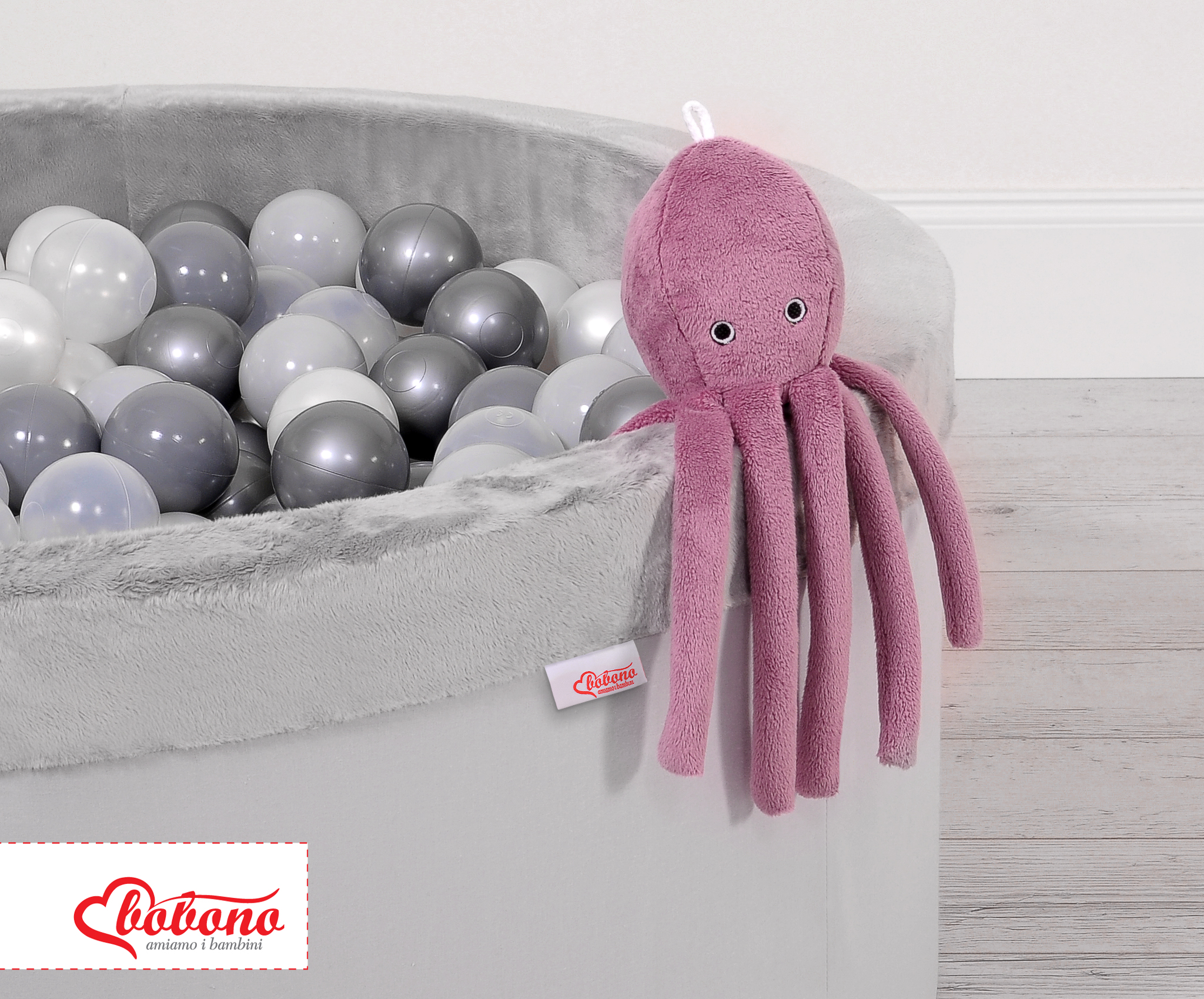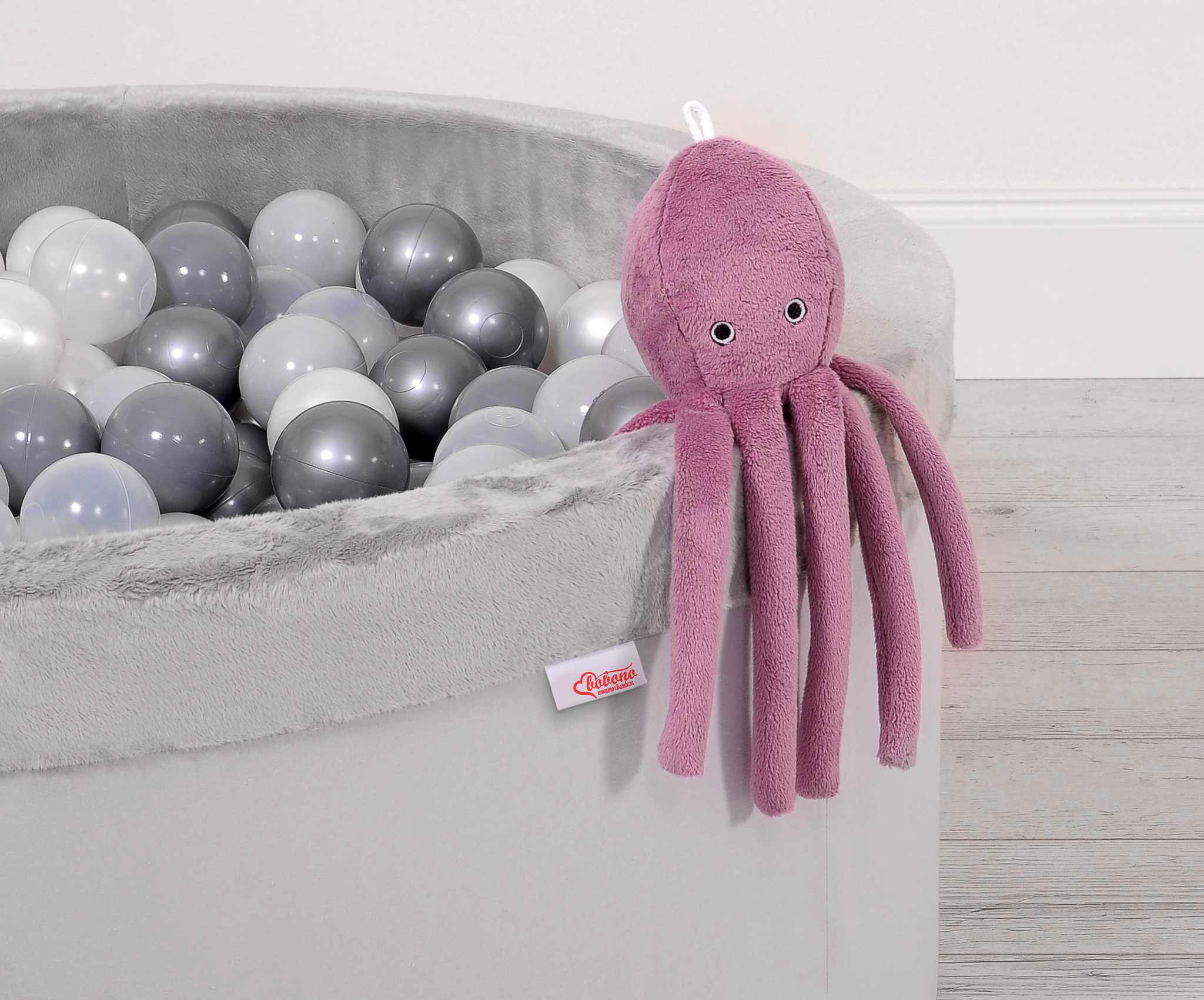 Funny cuddly octopus is perfect for sleeping and cuddling for each baby. Arms of ostopus are comfortable to hold by tiny baby hands. The octopus is perfect and safe for babies from firsts moments of life. With the gentle rattle noise it draws the attention of the child on itself. Made of soft touch, fluffy and delicate minky fleece. The filling inside the pillow it is Eco Fillball- atested Silicone Balls - "artificial fluff" for pillows- filling ensures proper settlement of the baby and air circulation.