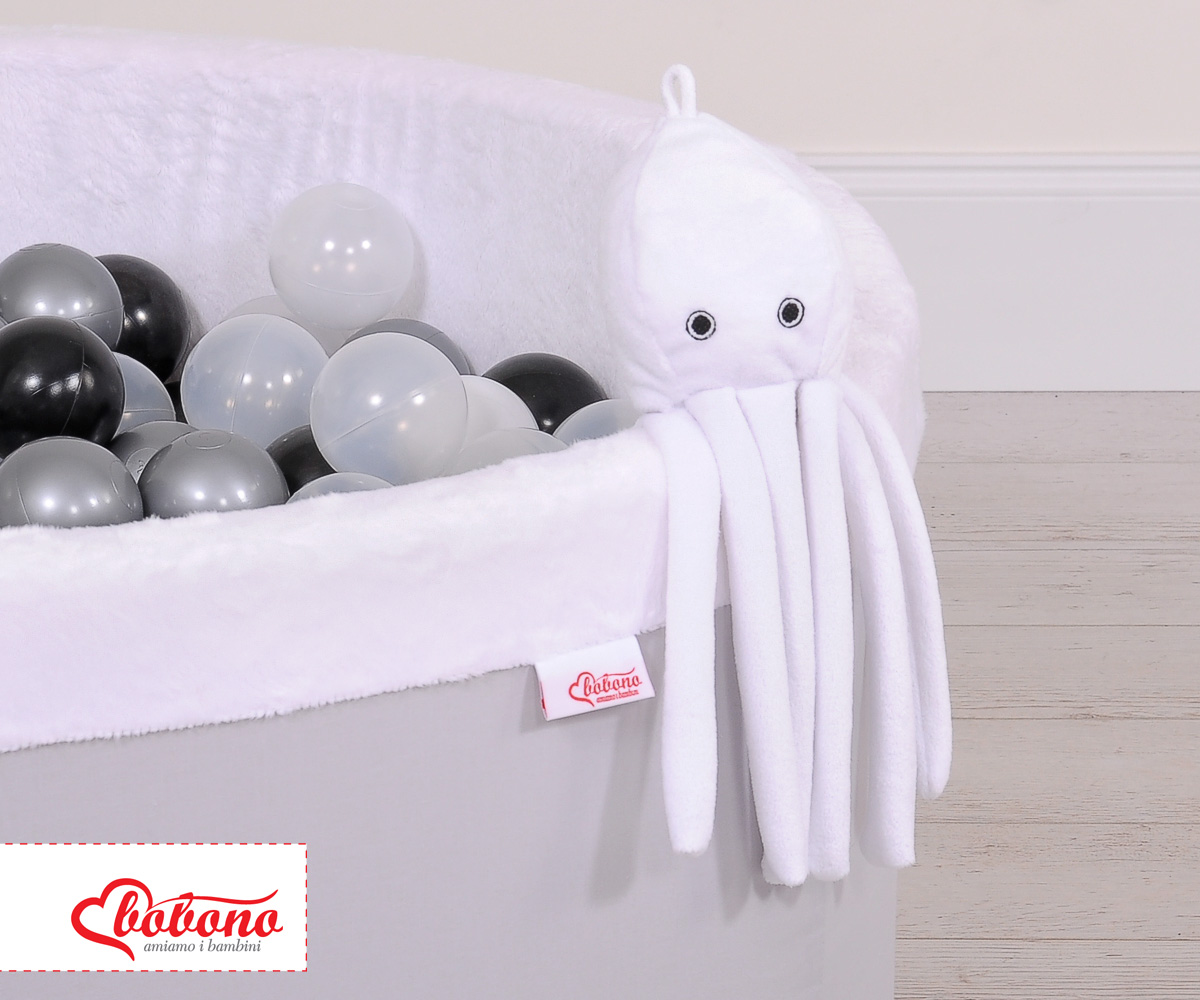 Funny cuddly octopus is perfect for sleeping and cuddling for each baby. Arms of ostopus are comfortable to hold by tiny baby hands. The octopus is perfect and safe for babies from firsts moments of life. With the gentle rattle noise it draws the attention of the child on itself. Made of soft touch, fluffy and delicate minky fleece. The filling inside the pillow it is Eco Fillball- atested Silicone Balls - "artificial fluff" for pillows- filling ensures proper settlement of the baby and air circulation.