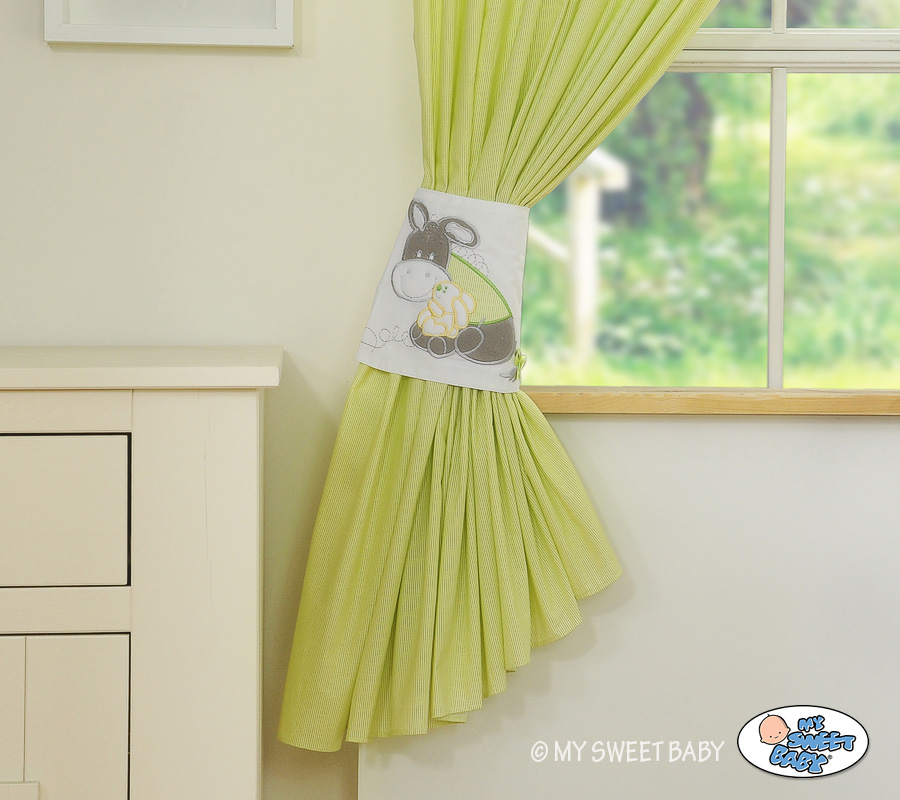 Curtains for baby room- Donkey Luca green Beautiful, long curtains. With the children's curtains you can make the children's room tastefully according to your individual taste.The curtains make a great contribution to making your little darling's room a place to stay. Curtains for Baby room- Collection Donkey Luca