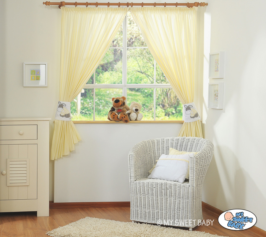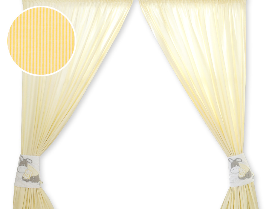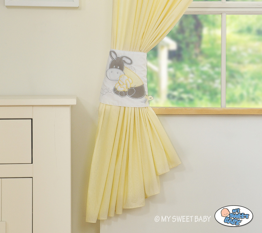 Curtains for baby room- Donkey Luca yellow Beautiful, long curtains. With the children's curtains you can make the children's room tastefully according to your individual taste.The curtains make a great contribution to making your little darling's room a place to stay. Curtains for Baby room- Collection Donkey Luca