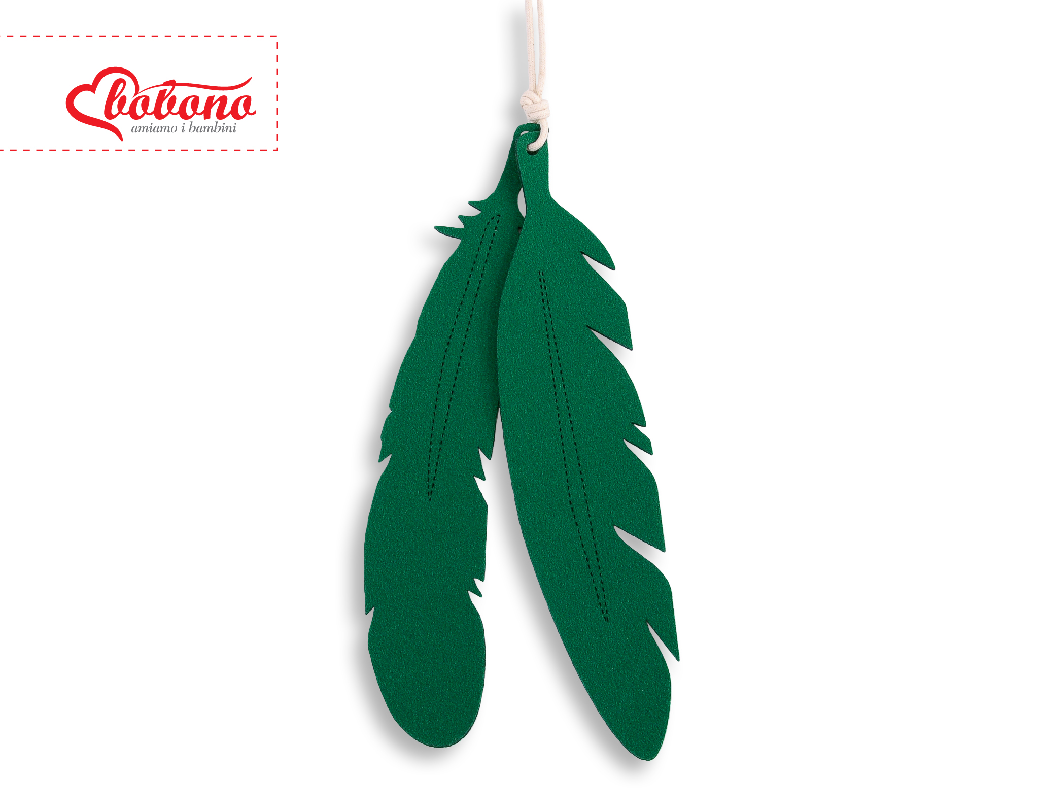 Decorative felt feathers 2pcs - green Decorative felt feathers. Beautiful decoration of the children's room. Made of felt 4mm thick. The feathers can be hung anywhere.
